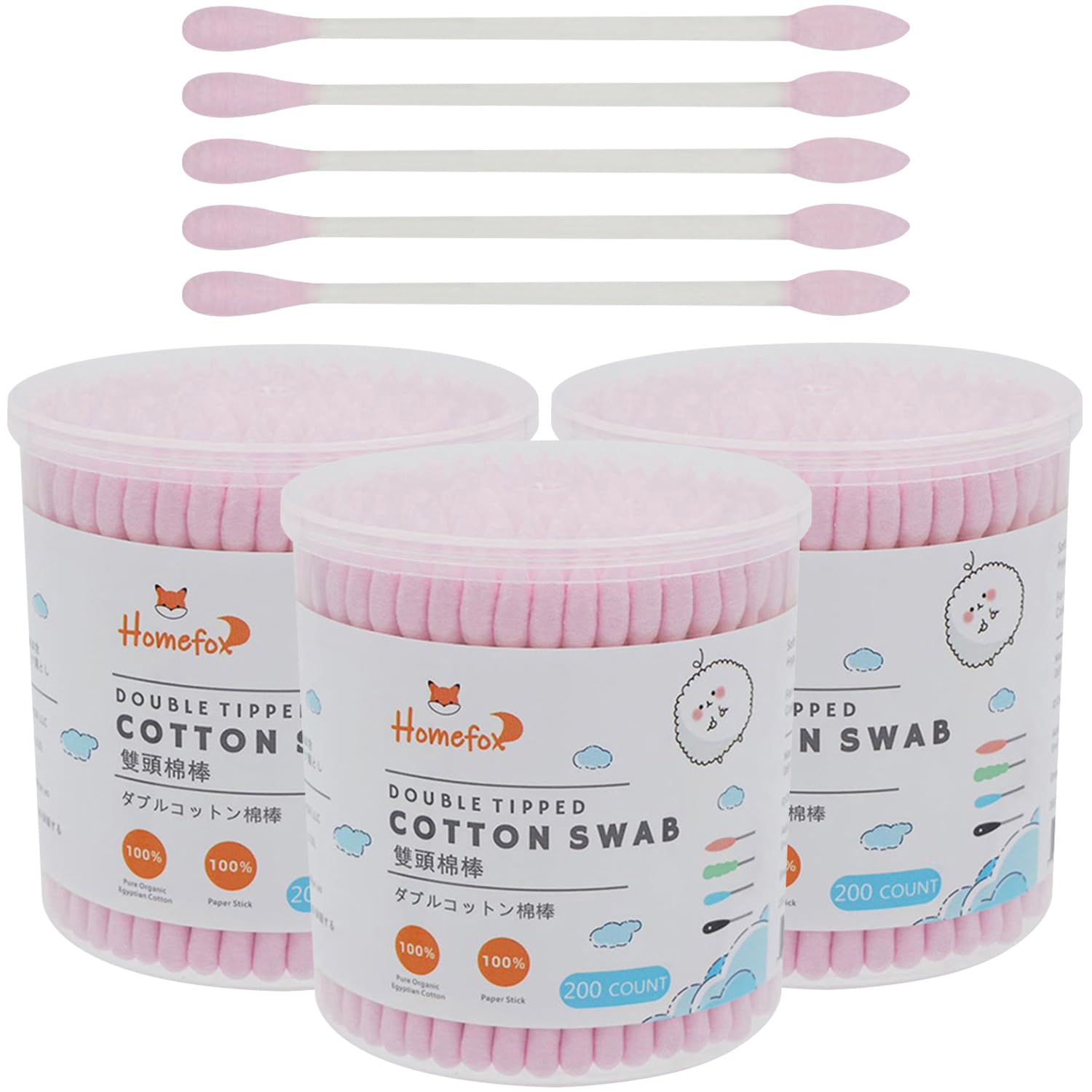 El producto incluye: tres paquetes de hisopos de algodón puntiagudos de precisión rosa HOMEFOX en total 600 unidades (200 unidades cada caja) capullos de algodón puntiagudos de precisión de doble cara Qtips firmemente envueltos puntas de algodón de papel sin pelusas, orgánico, suave, sin crueldad, puntiagudos y redondos (rosa)