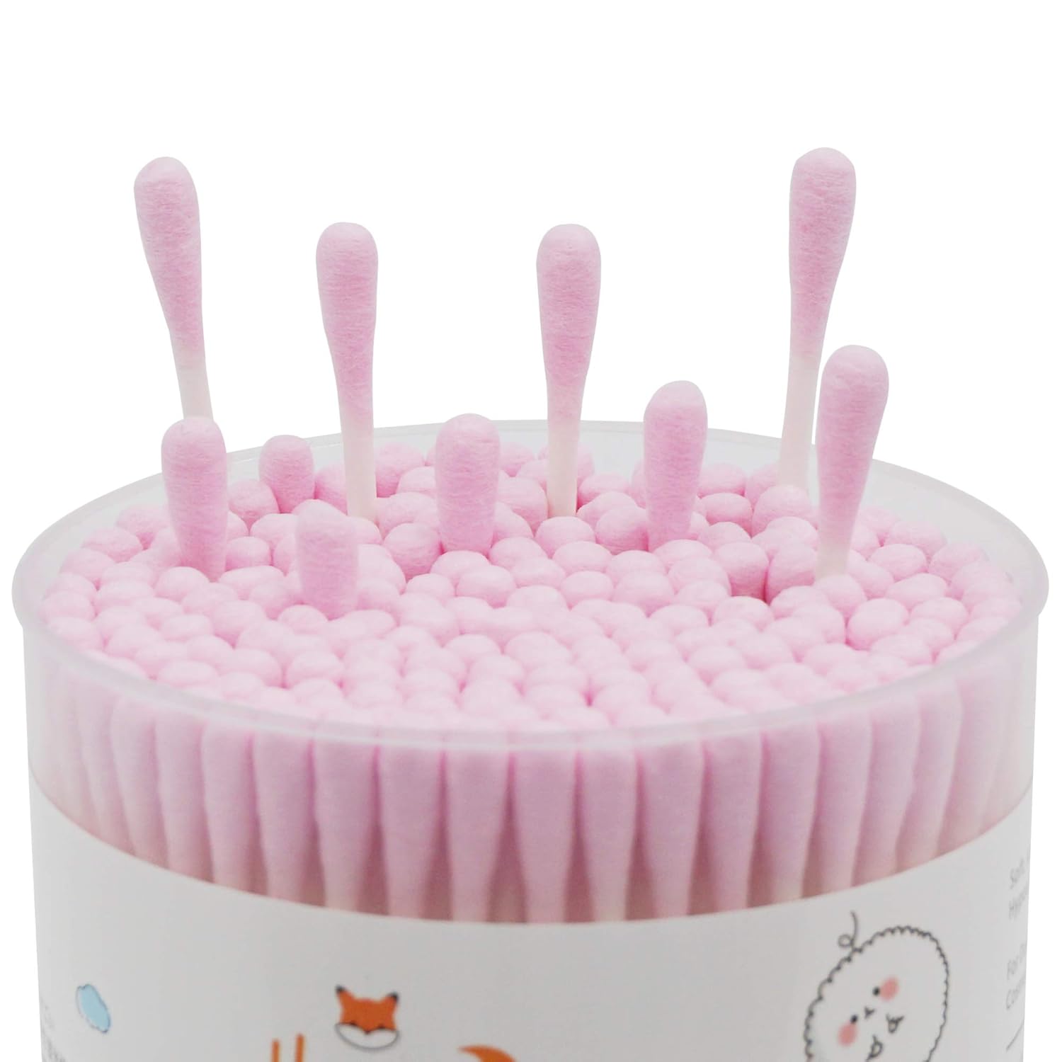 HOMEFOX Hisopos de algodón rosa con punta de precisión, 600 capullos de algodón puntiagudos de doble cara firmemente envueltos en barra de papel