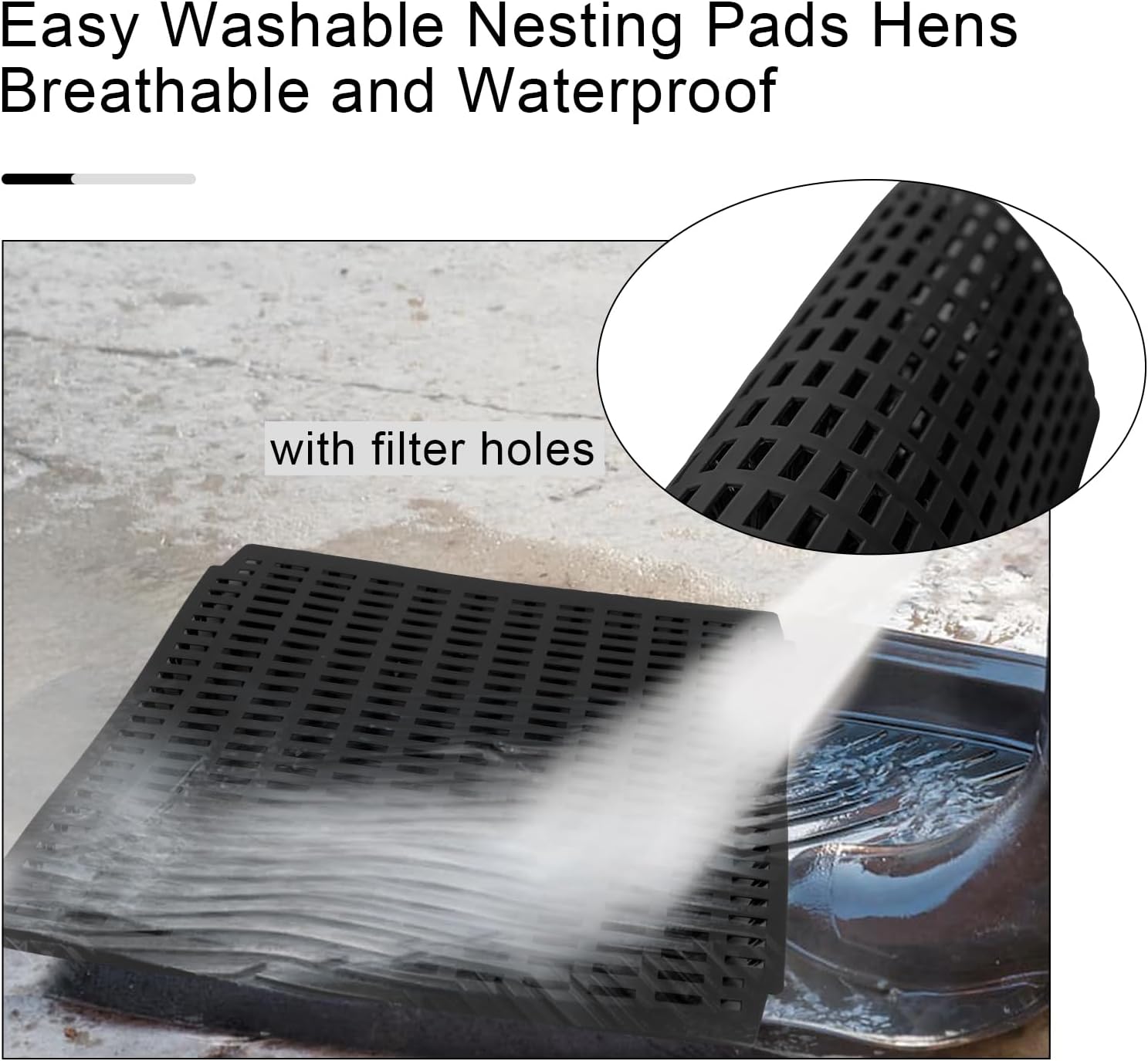 [Limpias e higiénicas] Almohadillas anidadoras de pollo con agujeros para una mejor filtración de suciedad y estiércol, asegurando una superficie limpia y seca para huevos de gallina frescos., Reducción de la rotura de los huevos: el cojín es suave y acolchado, lo que aumenta la fricción para evitar que los huevos se resbalen., Impermeables, suaves y duraderas: hechas de material de polietileno de alta calidad, nuestras almohadillas de anidación de pollo son duraderas y reutilizables., Aplicable a todos los gallineros y gallineros: tamaño de 12 x 12 pulgadas, el usuario puede cortar almohadillas anidadoras de pollo a medida, compatible con todos los gallineros y gallineros.