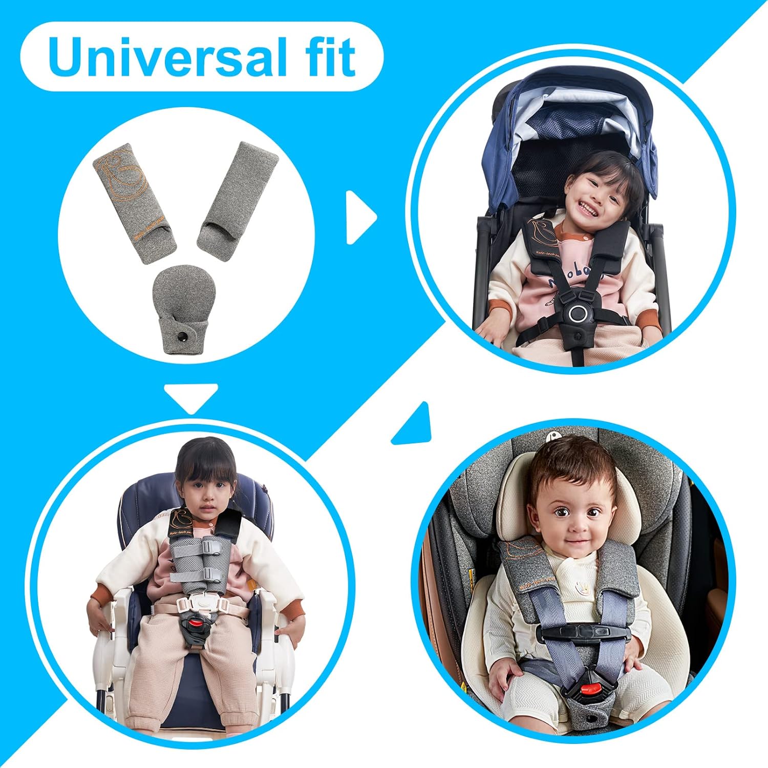 Juego de fundas de correa de asiento de automóvil para bebés y niños, fundas para cinturón de seguridad con almohadilla para la entrepierna, diseño