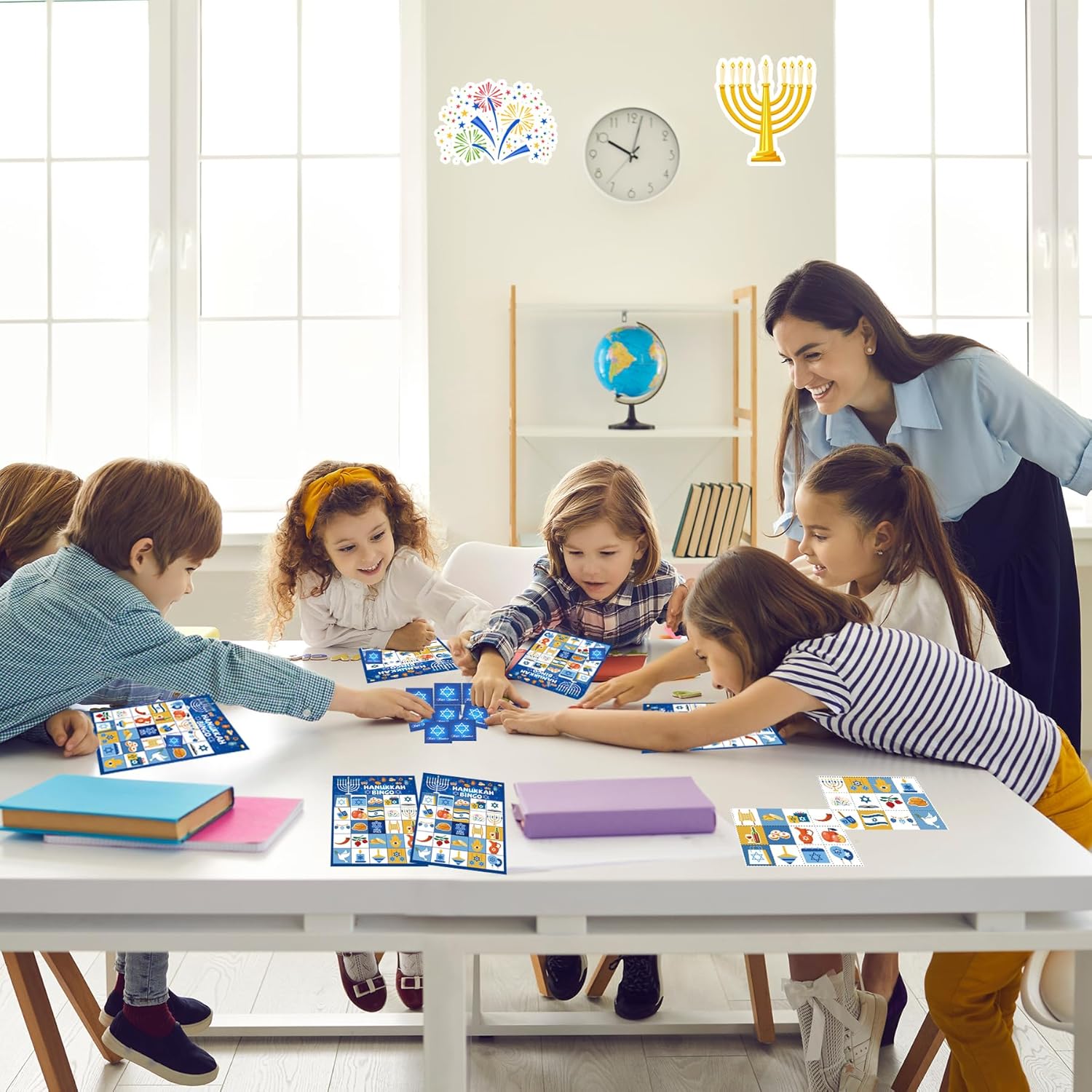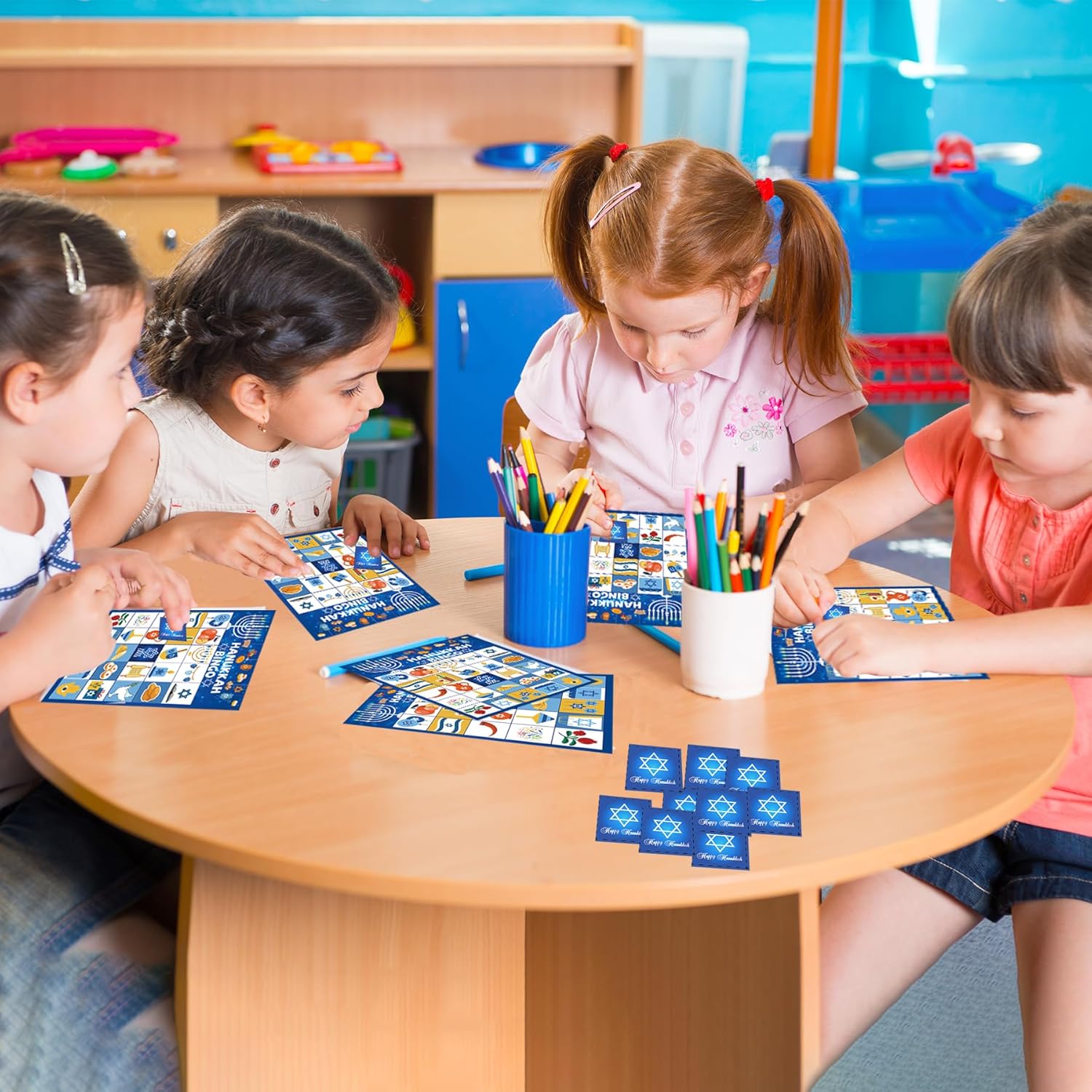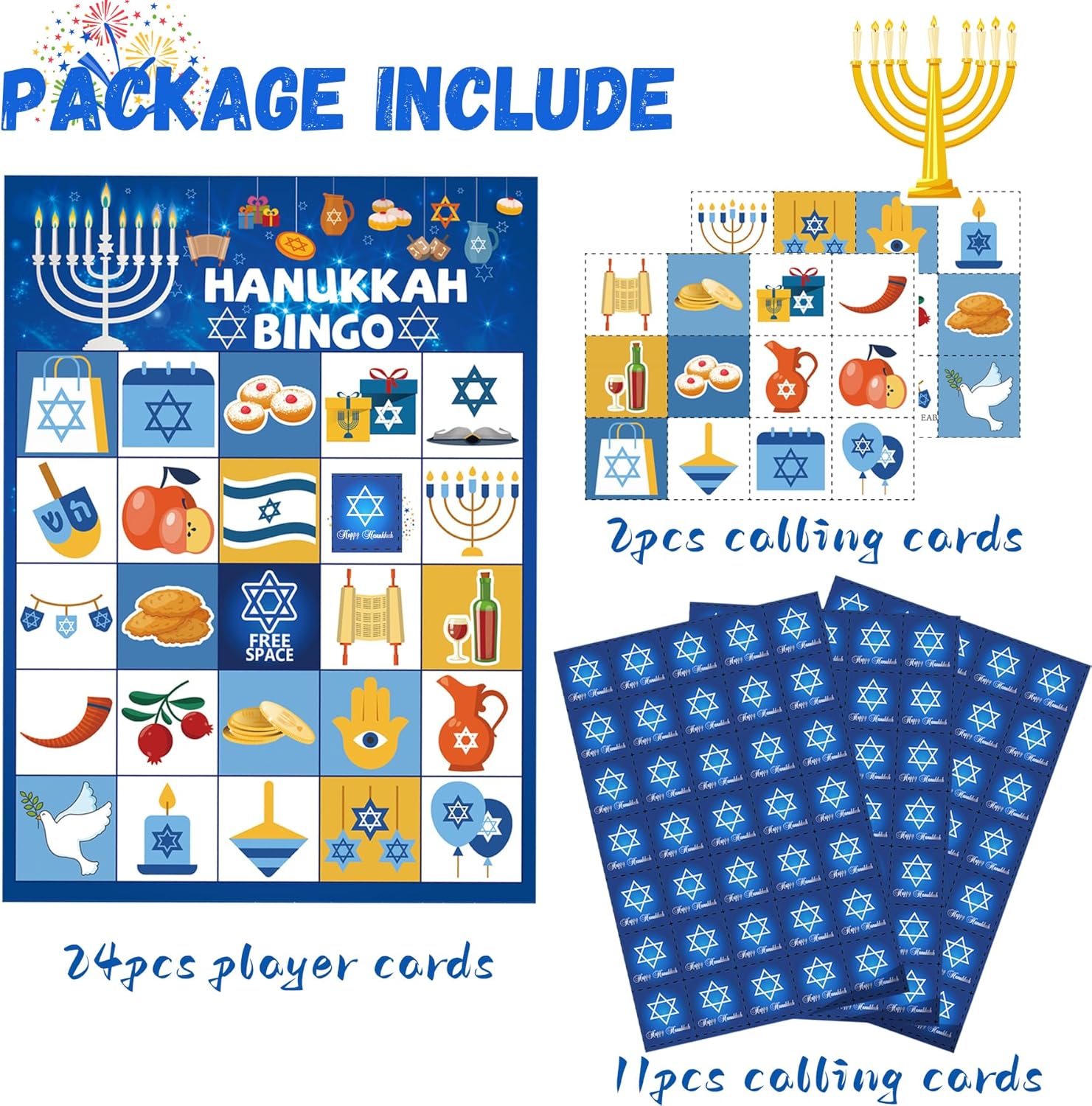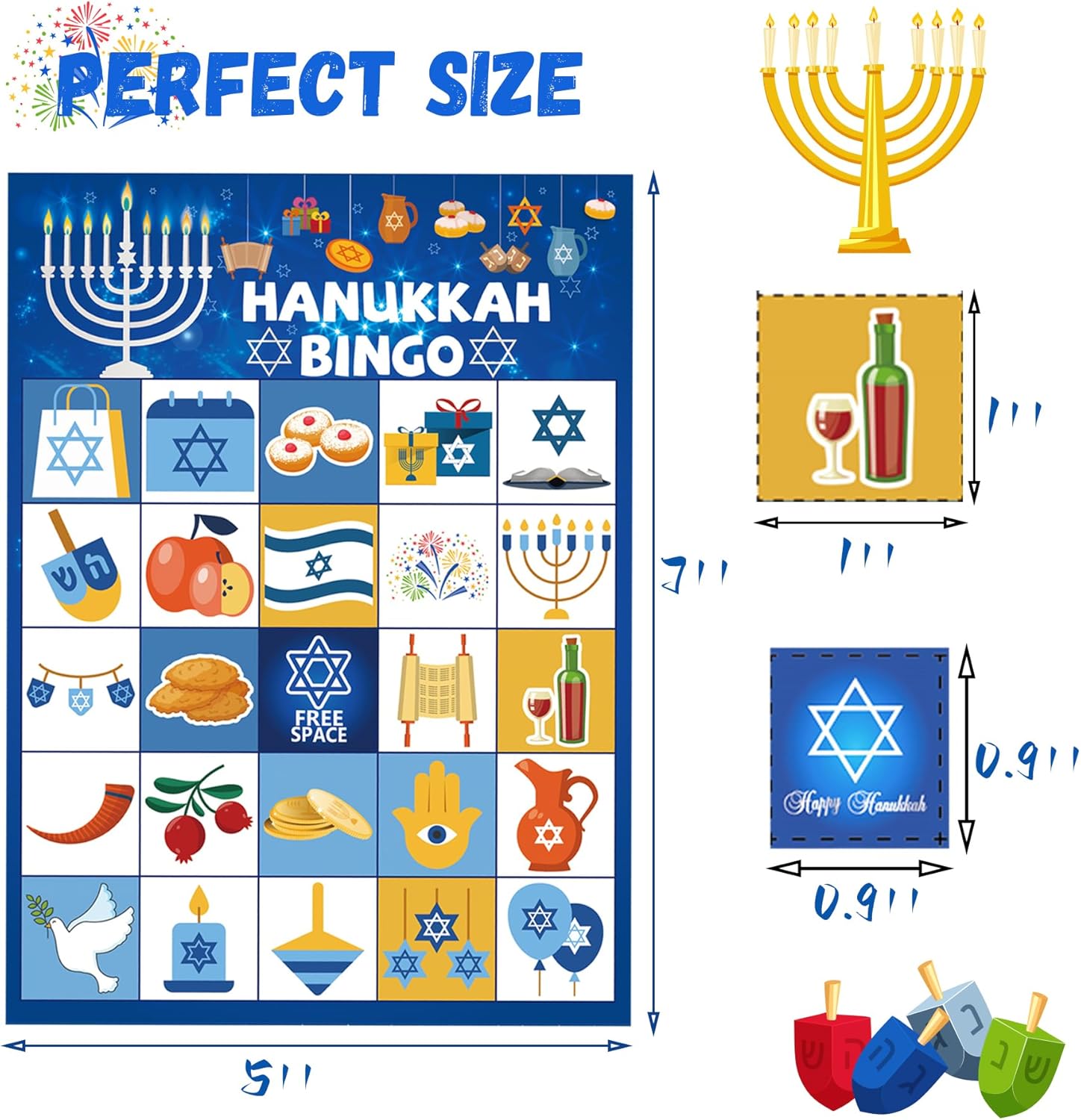 Juegos de bingo de Hanukkah Decoración de Janucá Juegos de Janucá para niños y adultos, juegos de fiesta de Hanukkah para 24 jugadores, tarjetas de