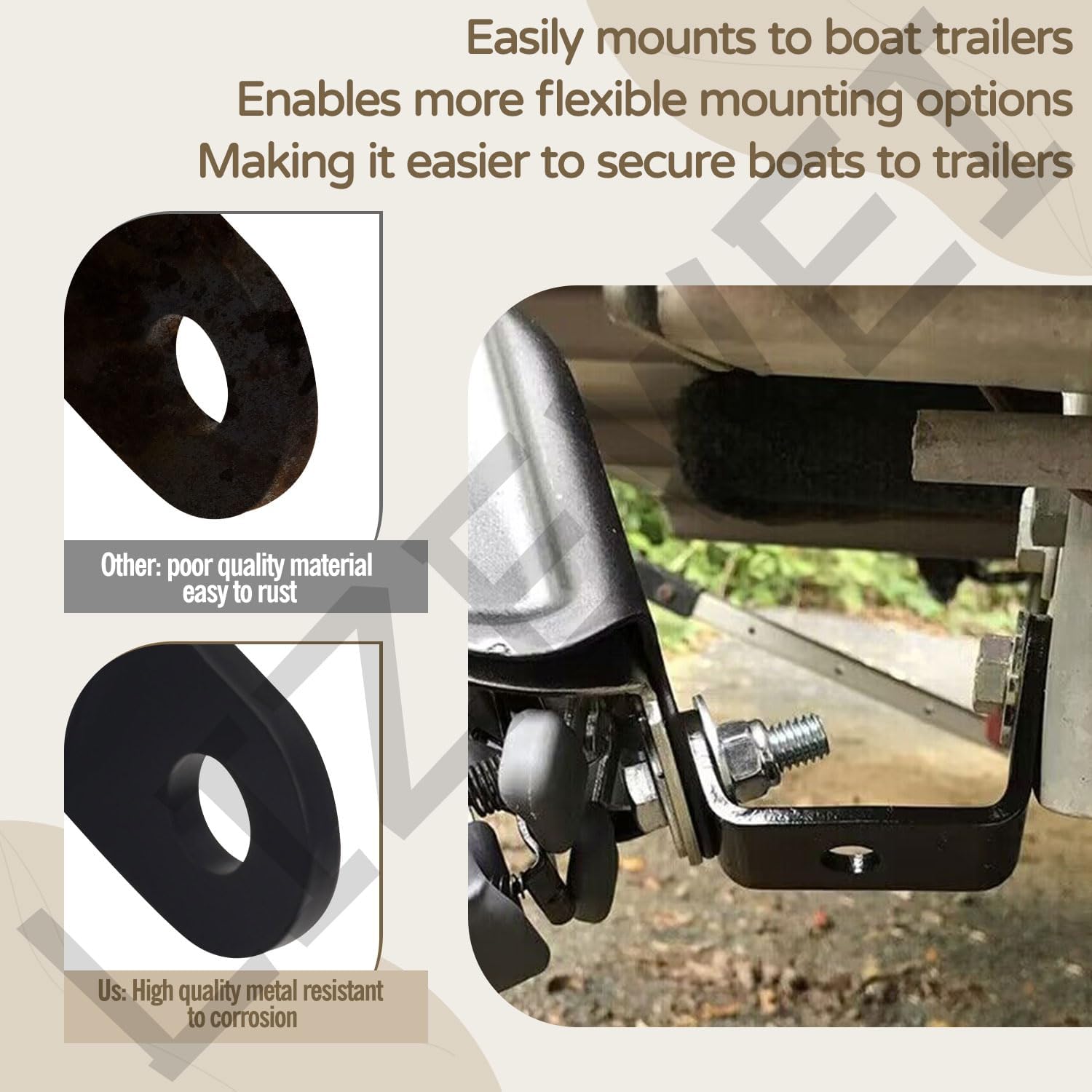 Información del producto: producto incluido 2 x kit de soporte de montaje universal. Consulta las imágenes para obtener información específica del tamaño del producto., Antes: más frotamiento y astillado Contacto cercano entre la correa y el marco del remolque; vida útil más corta; Después: el soporte de montaje protege la correa; vida útil más larga del remolque., El kit de soporte tiene una resistencia a la rotura de 5,000 libras con una carga de trabajo segura de 1,666 pernos inoxidables para uso con amarres retráctiles BoatBuckle G2, Se monta fácilmente en remolques de barcos, permite opciones de montaje más flexibles, lo que facilita la fijación de los barcos a los remolques, Nuestro propósito de ventas está comprometido con la satisfacción de cada cliente, si tienes alguna pregunta, ponte en contacto con nosotros rápidamente, te responderemos en 24 horas.