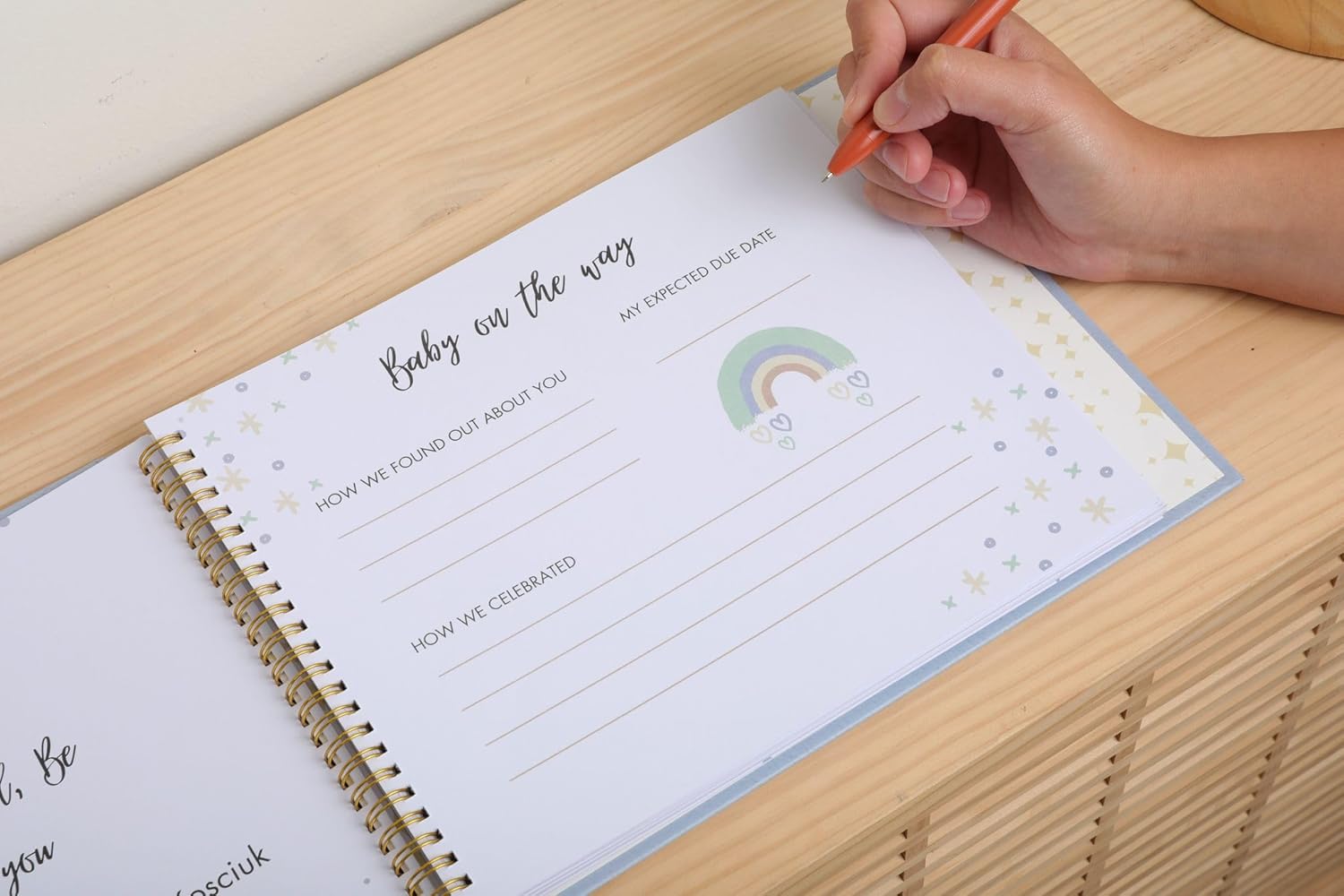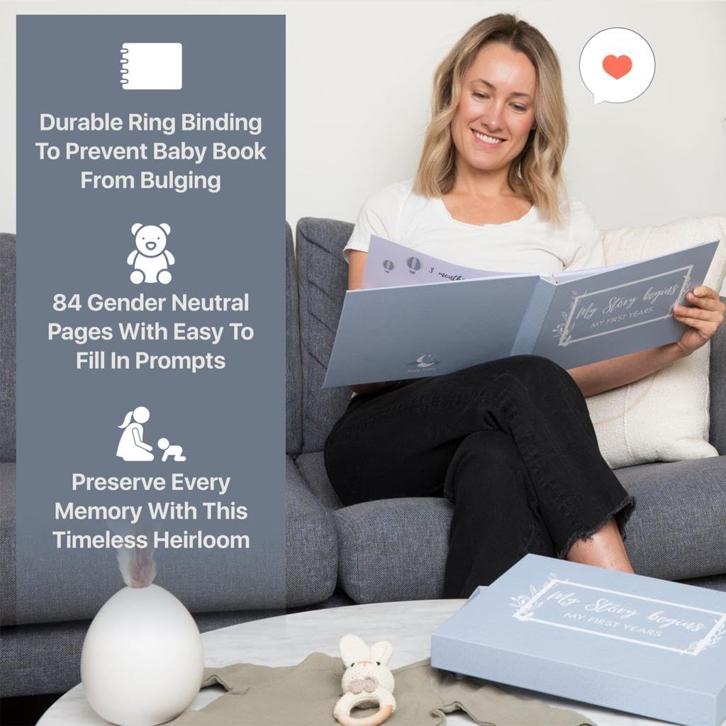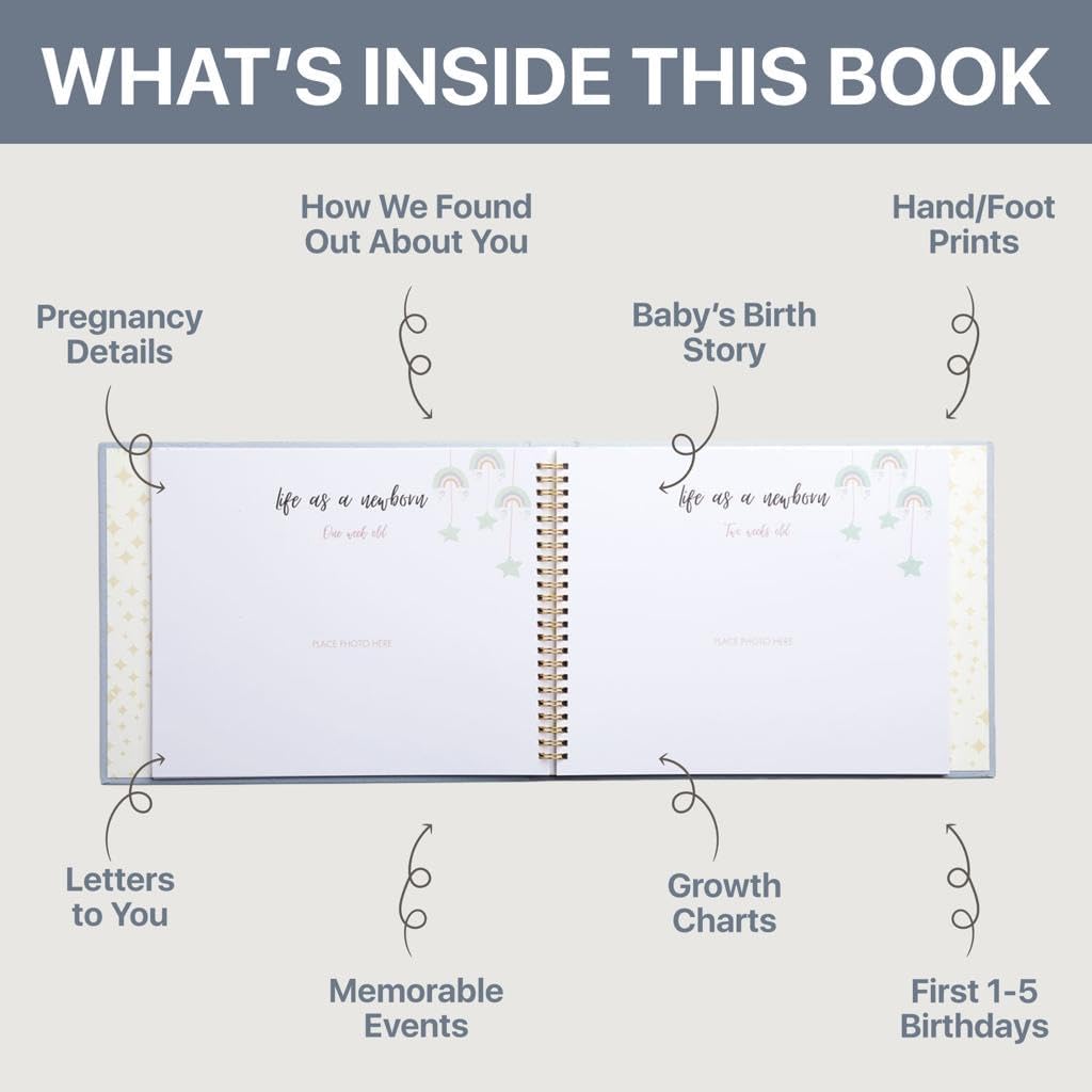 Libro de recuerdos para bebés desde el embarazo hasta los 5 años, 84 páginas guiadas de género neutro para bebé niño o niña, un diario atemporal y