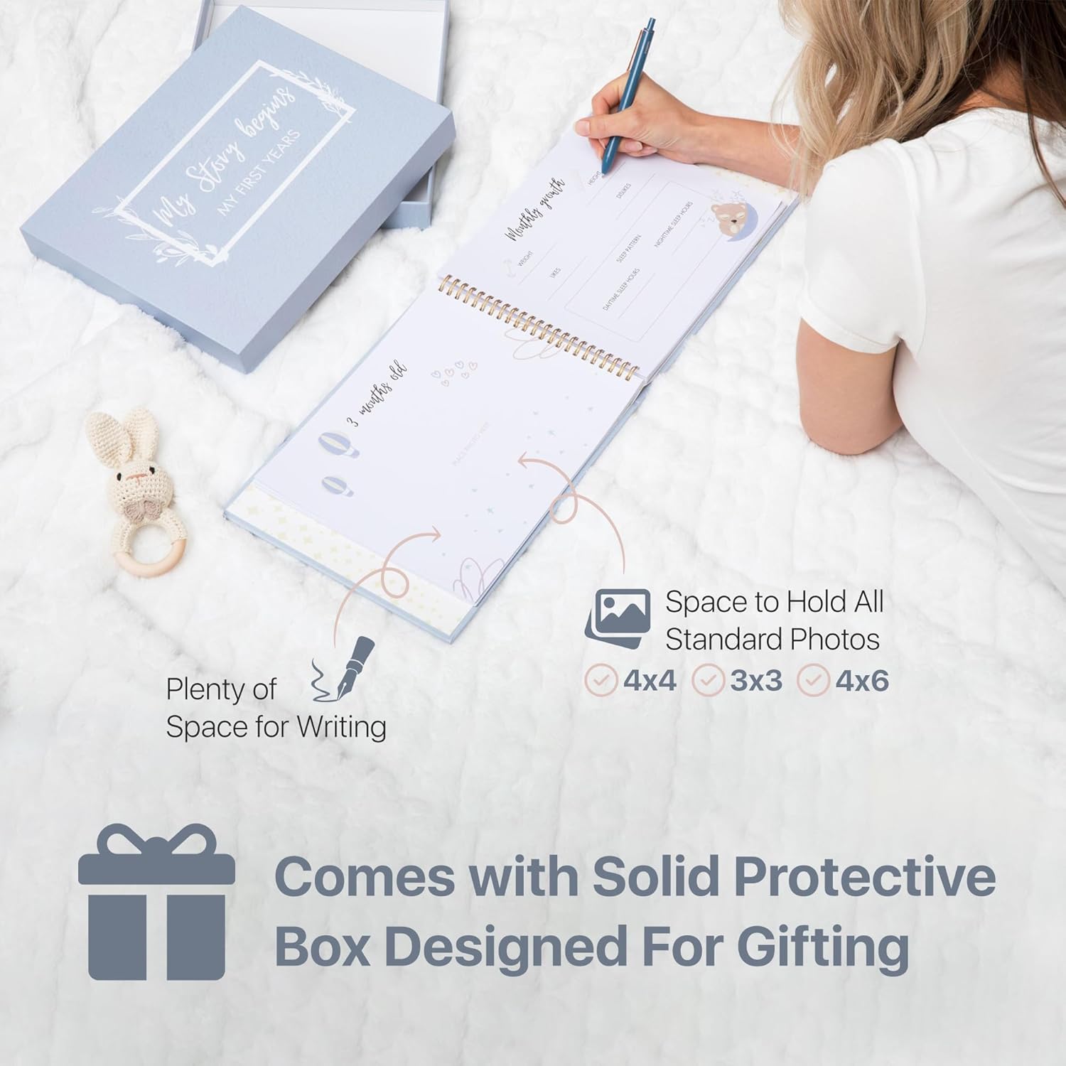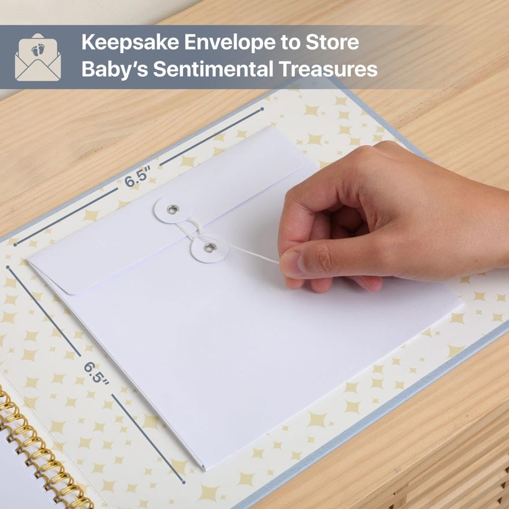 84 páginas que te guían a través de – Nuestro libro de recuerdos para bebés durante los primeros 5 años está diseñado con instrucciones fáciles de seguir para ayudarte a registrar los preciosos hitos de tu bebé. Completar el diario de tu bebé es sin esfuerzo con este recuerdo., Sobre de recuerdo: nuestro diario de recuerdos para bebés para nuevos padres cuenta con un sobre de 6.5 x 6.5 pulgadas con un cierre de cuerda seguro para garantizar la seguridad de artículos preciosos como mechones de cabello, bandas de hospital, joyas de reliquia y mucho más., Regalo sincero para futuros padres: con papel de cartulina de 180 GSM para evitar que la tinta se derrame. Este libro de recuerdos para bebés ofrece espacio dedicado para fotos de todos los tamaños, lo que te permite capturar el viaje de tu hijo con vívidos detalles. Fabricado con papel de alta calidad, este libro de recuerdos para bebés se presenta elegantemente en una carpeta de anillos de tapa dura duradera, completa con una caja protectora para guardarlo durante años., Diseño encantador para todas las dinámicas familiares: este encantador álbum de recortes para bebé cuenta con encantadoras ilustraciones y citas conmovedoras para ayudarte a capturar cada momento precioso. Reconocemos que el viaje de cada familia es único, nuestro libro de récords para bebés durante los primeros 5 años está cuidadosamente diseñado para adaptarse a todo tipo de familias., Este libro de recuerdos incluye: antes del nacimiento: árbol genealógico, anuncio de embarazo, actualizaciones de baby shower, baby shower (primeras semanas: historia de nacimiento/estadísticas, huellas de manos/pies, hogar dulce hogar, primeras visitantes/baño – primer año: tabla de crecimiento, actualizaciones mensuales y recién nacidos, primer cumpleaños, primeras vacaciones, tabla de dientes – primeros años: cumpleaños edades 2 – 5, resúmenes anuales, Primer día de clases y Cartas para ti