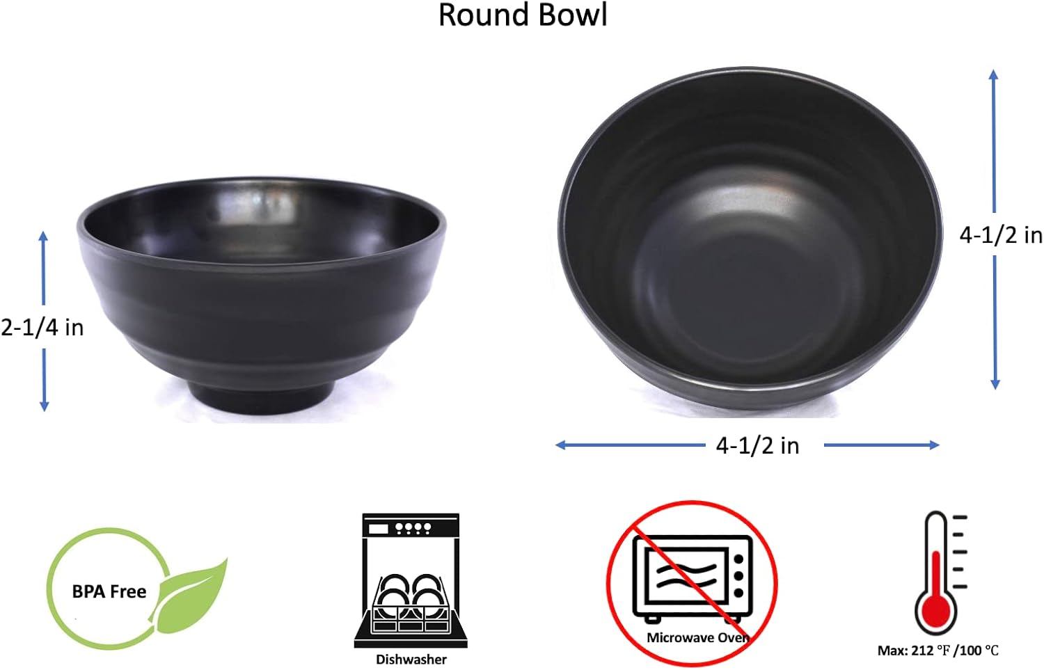 Lucky Star (redondos, melamina tazones Pho sopa de fideos Ramen Wonton sopa tazón de arroz, 4.5″ (8oz), 5.5″ (16oz), 7.5″ (46oz), Negro, Swirl