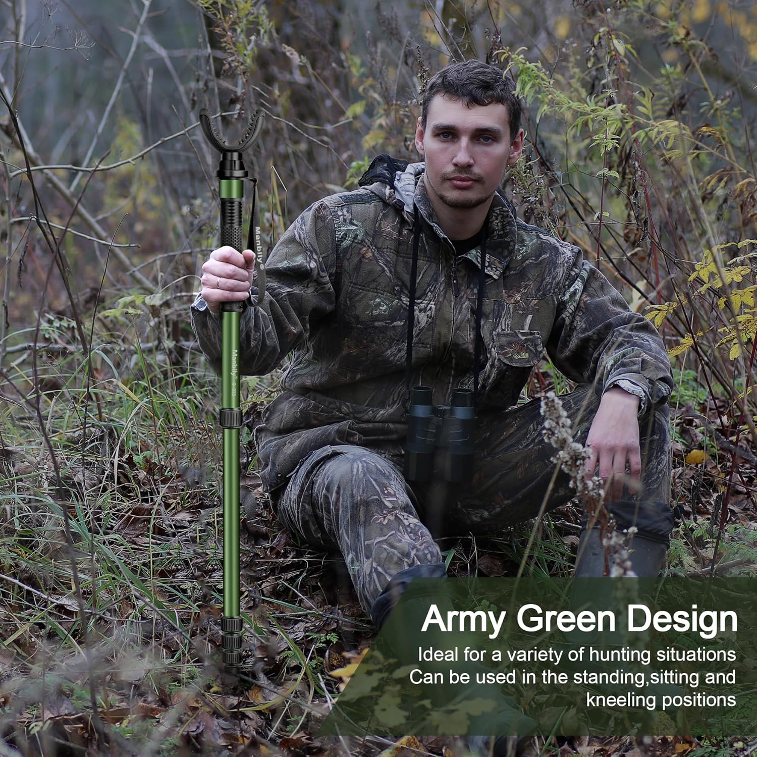 Manbily Bastón de tiro monopie para caza, soporte de aluminio con cabeza de descanso en forma de U y mango de bastón, hasta 68 pulgadas, verde (sin