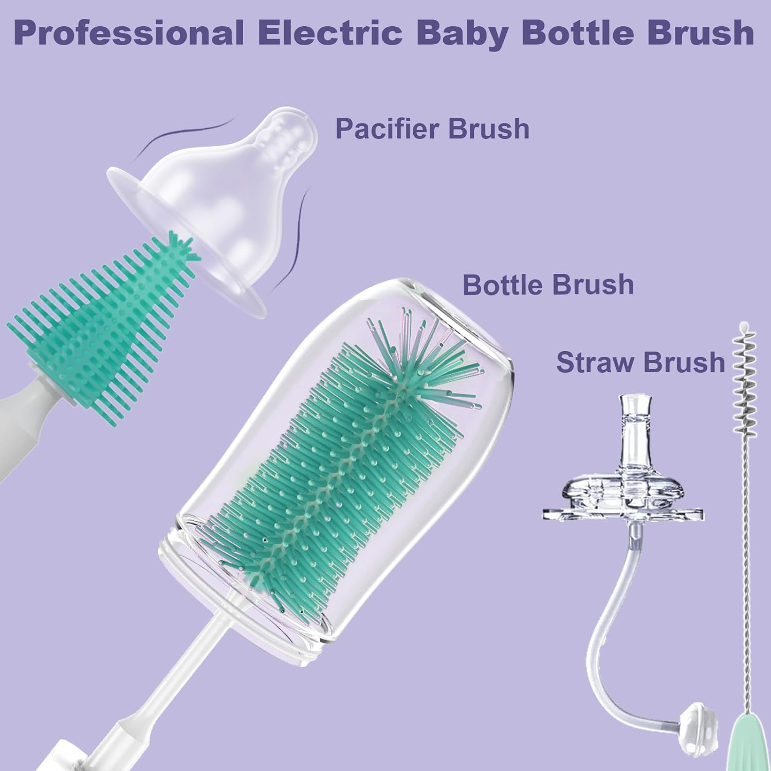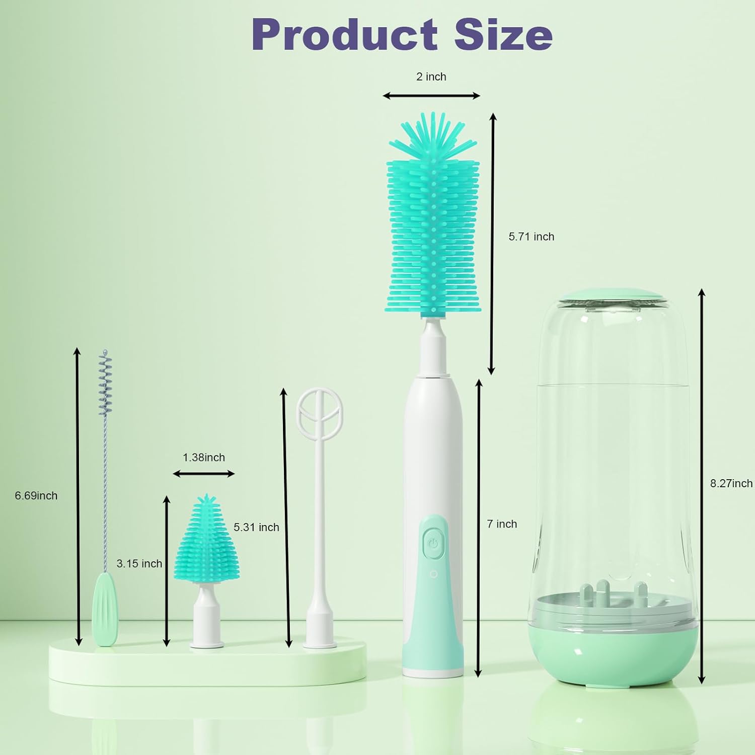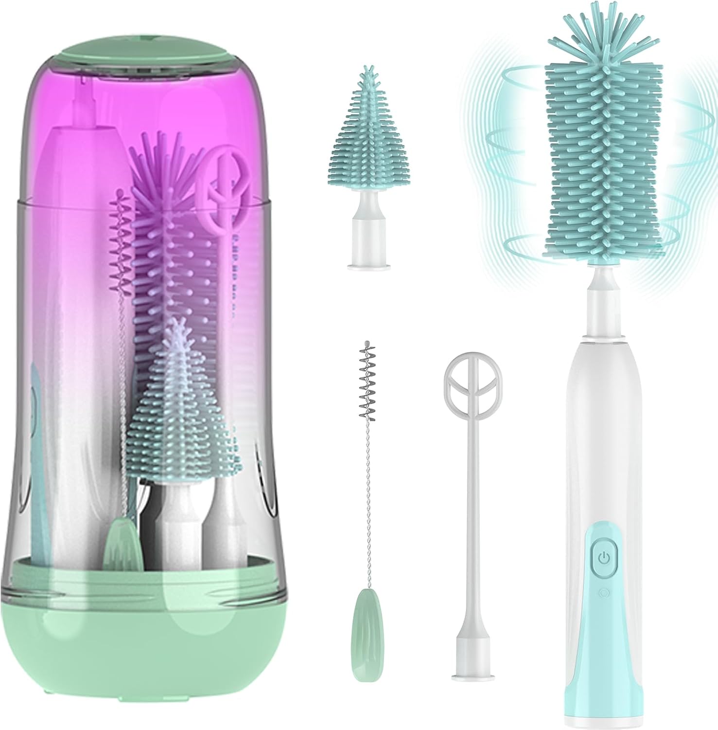 Mutilife Juego de limpiador eléctrico de cepillo para biberones con función de agitación de leche en polvo, kit de cepillo de silicona recargable