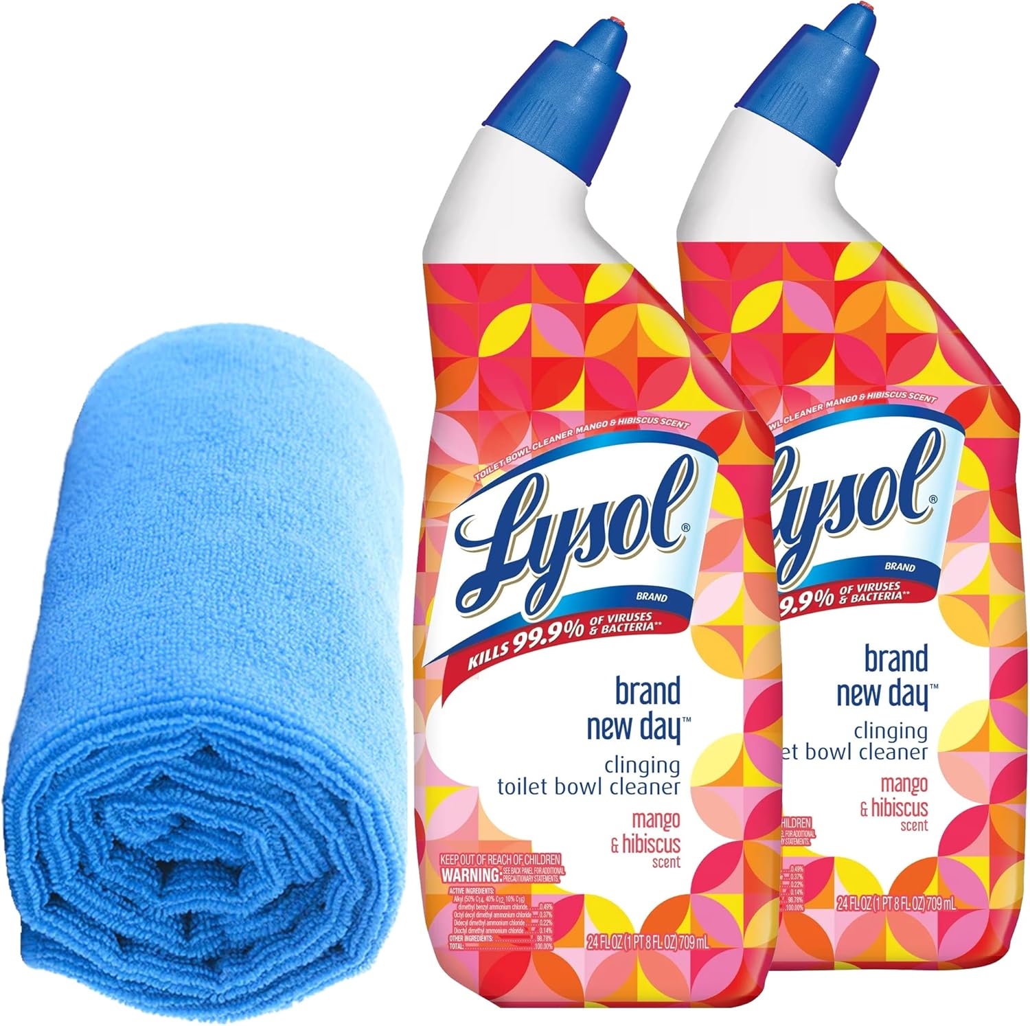 Paquete de 2 limpiadores de inodoro Lysol’ – Potente desinfectante con removedor de manchas, 24 onzas líquidas cada uno, 1 paño de limpieza de