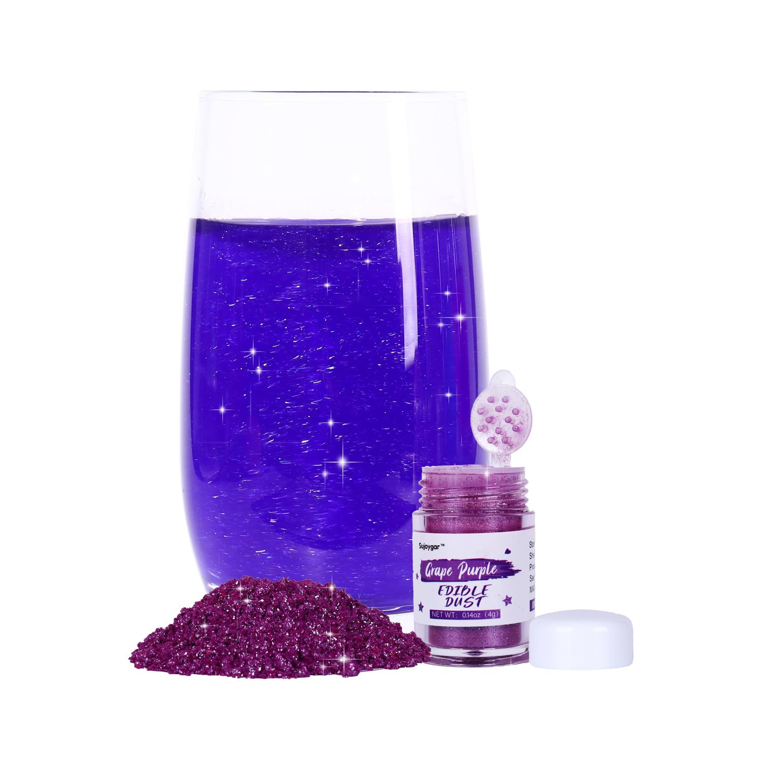 Purpurina comestible color morado uva para bebidas, cócteles, pasteles, vodka, grado alimenticio 0.14 oz, Sujoygar, polvo brillante