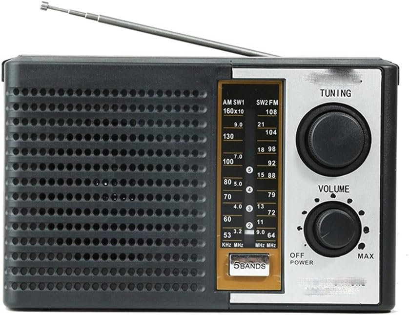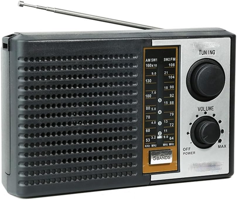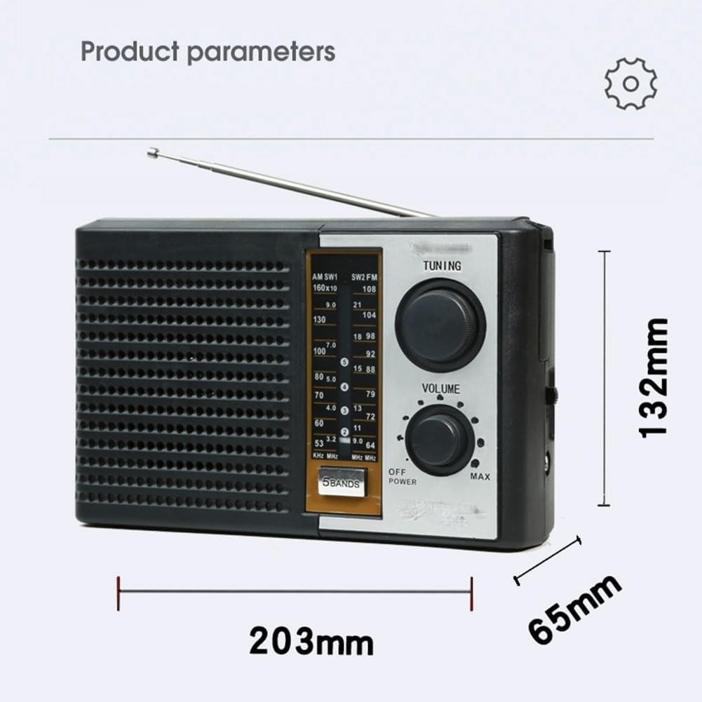 Radio meteorológica AMFMTVSW Radio meteorológica 5 bandas Altavoz de radio meteorológica alimentada por batería para ancianos Tarjeta de soporte