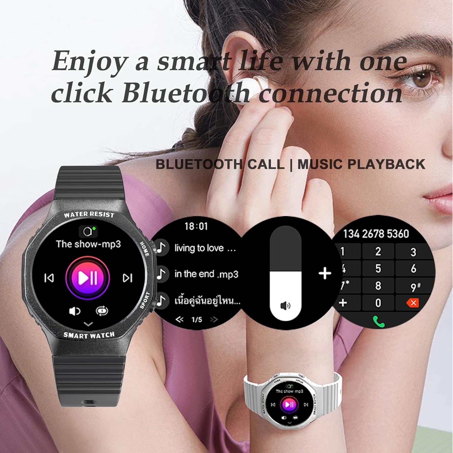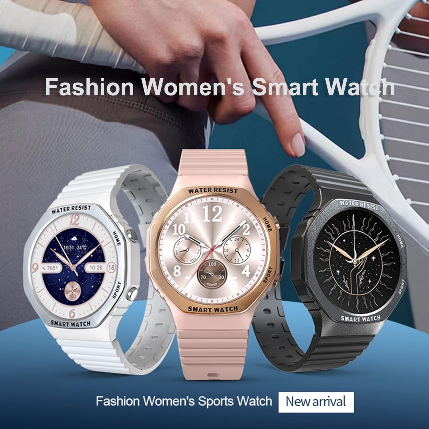 【Esfera de reloj octágono única】La pantalla táctil completa de alta definición de 1.32 pulgadas combinada con 360 píxeles de alta definición te ofrece una nueva experiencia visual. Construido con una variedad de diales de estilo diferente, también puede elegir cualquier imagen que desee como su interfaz de usuario exclusiva. La banda de silicona suave es cómoda y agradable al tacto, adecuada para la vida diaria y para uso deportivo., Llamadas Bluetooth y notificaciones inteligentes: después de la conexión Bluetooth, puedes responder/hacer llamadas directamente en tu reloj. Los altavoces y el micrófono configurados de alta fidelidad pueden proporcionarle el sonido más claro y auténtico. El reloj también puede sincronizar contactos y registros de llamadas. También puede recibir notificaciones de diferentes software social y mensajes de texto (como Facebook, WhatsApp, Instagram, Twitter, etc.) en tu reloj, e incluso colgar llamadas., Presta atención a la salud de la mujer: el reloj de salud monitorea de cerca tus indicadores de salud, como monitorear tu frecuencia cardíaca las 24 horas del día y monitorear tu sueño. Seguirá tu estado de sueño (sueño profundo, sueño suave y tiempo de vigilia) y proporcionará un análisis completo de la calidad del sueño. También puede registrar los períodos menstruales femeninos, proporcionando recordatorios personalizados para el manejo menstrual y la preparación del embarazo para las mujeres., 【Relojes inteligentes de fitness para mujer】El reloj inteligente de fitness tiene múltiples modos deportivos, como caminar, correr, ciclismo, fútbol, baloncesto, yoga y mucho más. Mientras haces ejercicio, el reloj puede registrar tus pasos, calorías, distancia, frecuencia cardíaca y otros datos de actividad, y detectar tu estado de actividad en tiempo real. Le dará una comprensión más detallada de sus actividades a lo largo del día. Es la elección perfecta para los entusiastas del fitness, Otras características básicas: reloj despertador, cronómetro, notificaciones de mensajes, recordatorio de llamadas, control de música, control remoto de cámara, clima, encontrar teléfono, registros menstruales femeninos, girar la muñeca para despertar, etc. El reloj inteligente para teléfonos Android se conecta a su teléfono a través de la aplicación “Fitcloudpro” y es compatible con Android 9.0 y superior, IOS12.0 y superior. Si tienes alguna pregunta, ponte en contacto con nosotros y te responderemos en 24 horas.