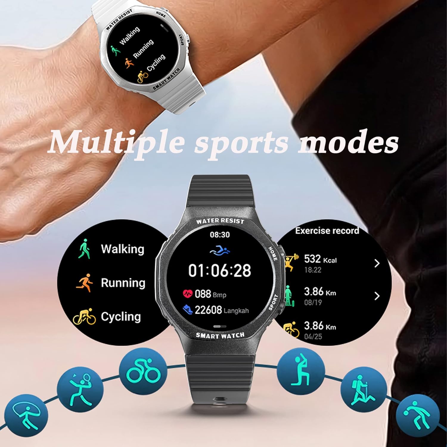 【Esfera de reloj octágono única】La pantalla táctil completa de alta definición de 1.32 pulgadas combinada con 360 píxeles de alta definición te ofrece una nueva experiencia visual. Construido con una variedad de diales de estilo diferente, también puede elegir cualquier imagen que desee como su interfaz de usuario exclusiva. La banda de silicona suave es cómoda y agradable al tacto, adecuada para la vida diaria y para uso deportivo. Llamadas Bluetooth y notificaciones inteligentes: después de la conexión Bluetooth, puedes responder/hacer llamadas directamente en tu reloj. Los altavoces y el micrófono configurados de alta fidelidad pueden proporcionarle el sonido más claro y auténtico. El reloj también puede sincronizar contactos y registros de llamadas. También puede recibir notificaciones de diferentes software social y mensajes de texto (como Facebook, WhatsApp, Instagram, Twitter, etc.) en tu reloj, e incluso colgar llamadas. Presta atención a la salud de la mujer: el reloj de salud monitorea de cerca tus indicadores de salud, como monitorear tu frecuencia cardíaca las 24 horas del día y monitorear tu sueño. Seguirá tu estado de sueño (sueño profundo, sueño suave y tiempo de vigilia) y proporcionará un análisis completo de la calidad del sueño. También puede registrar los períodos menstruales femeninos, proporcionando recordatorios personalizados para el manejo menstrual y la preparación del embarazo para las mujeres. 【Relojes inteligentes de fitness para mujer】El reloj inteligente de fitness tiene múltiples modos deportivos, como caminar, correr, ciclismo, fútbol, baloncesto, yoga y mucho más. Mientras haces ejercicio, el reloj puede registrar tus pasos, calorías, distancia, frecuencia cardíaca y otros datos de actividad, y detectar tu estado de actividad en tiempo real. Le dará una comprensión más detallada de sus actividades a lo largo del día. Es la elección perfecta para los entusiastas del fitness Otras características básicas: reloj despertador, cronómetro, notificaciones de mensajes, recordatorio de llamadas, control de música, control remoto de cámara, clima, encontrar teléfono, registros menstruales femeninos, girar la muñeca para despertar, etc. El reloj inteligente para teléfonos Android se conecta a su teléfono a través de la aplicación “Fitcloudpro” y es compatible con Android 9.0 y superior, IOS12.0 y superior. Si tienes alguna pregunta, ponte en contacto con nosotros y te responderemos en 24 horas.