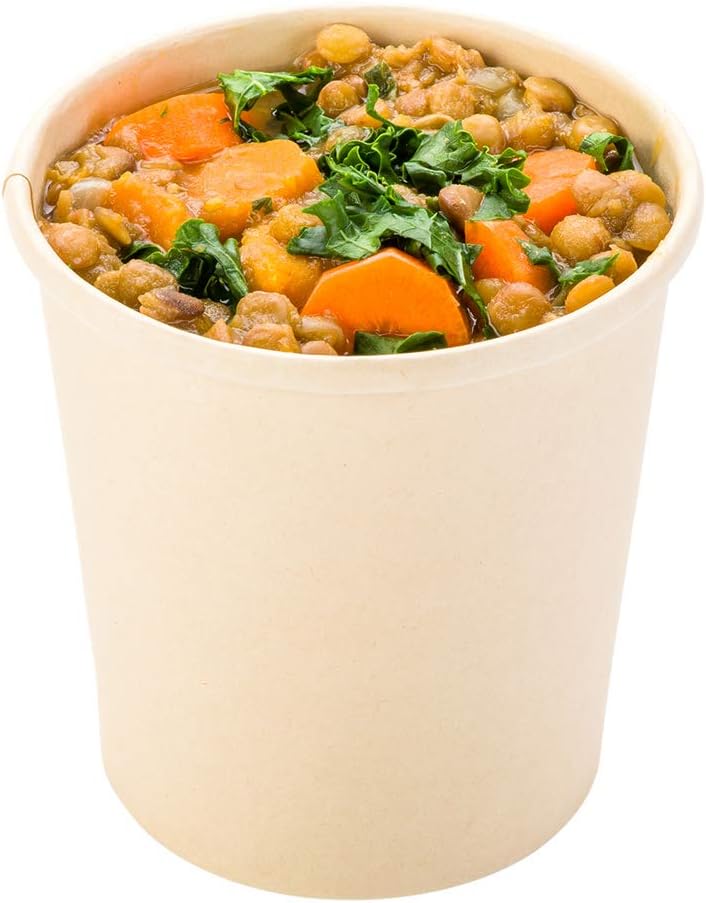 Reciclables y renovables: fabricadas con papel de bambú reciclable y renovable, estas tazas de sopa Bio se pueden reciclar en un abrir y cerrar de ojos, pero mantienen perfectamente su forma mientras están en uso. CONTIENE 16 OUNCIAS: Utilice estos vasos de papel de bambú para servir hasta 16 onzas de sus alimentos preparados. Cada una de estas tazas de sopa desechables de 16 onzas mide 3.9 pulgadas de alto y 3.8 pulgadas de ancho. Duradero y resistente a las fugas: equipado con una base duradera y paredes resistentes, estas tazas de sopa de papel contienen fácilmente porciones pesadas de tus sopas, guarniciones o postres. Sin fugas ni desorden IDEAL PARA ALIMENTOS CALIENTES O FRÍOS: Ya sea que estés envasando sopas o yogur congelado, estos vasos de papel de bambú te tienen cubierto. Ideal para camiones de comida, restaurantes, empresas de catering o chefs caseros 200 CONTENEDORES POR PEDIDO: Recibirás 200 contenedores con cada pedido. ¡Asegúrate de estar abastecido y listo para los negocios!