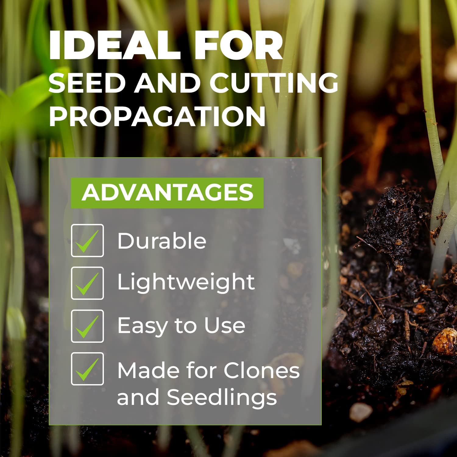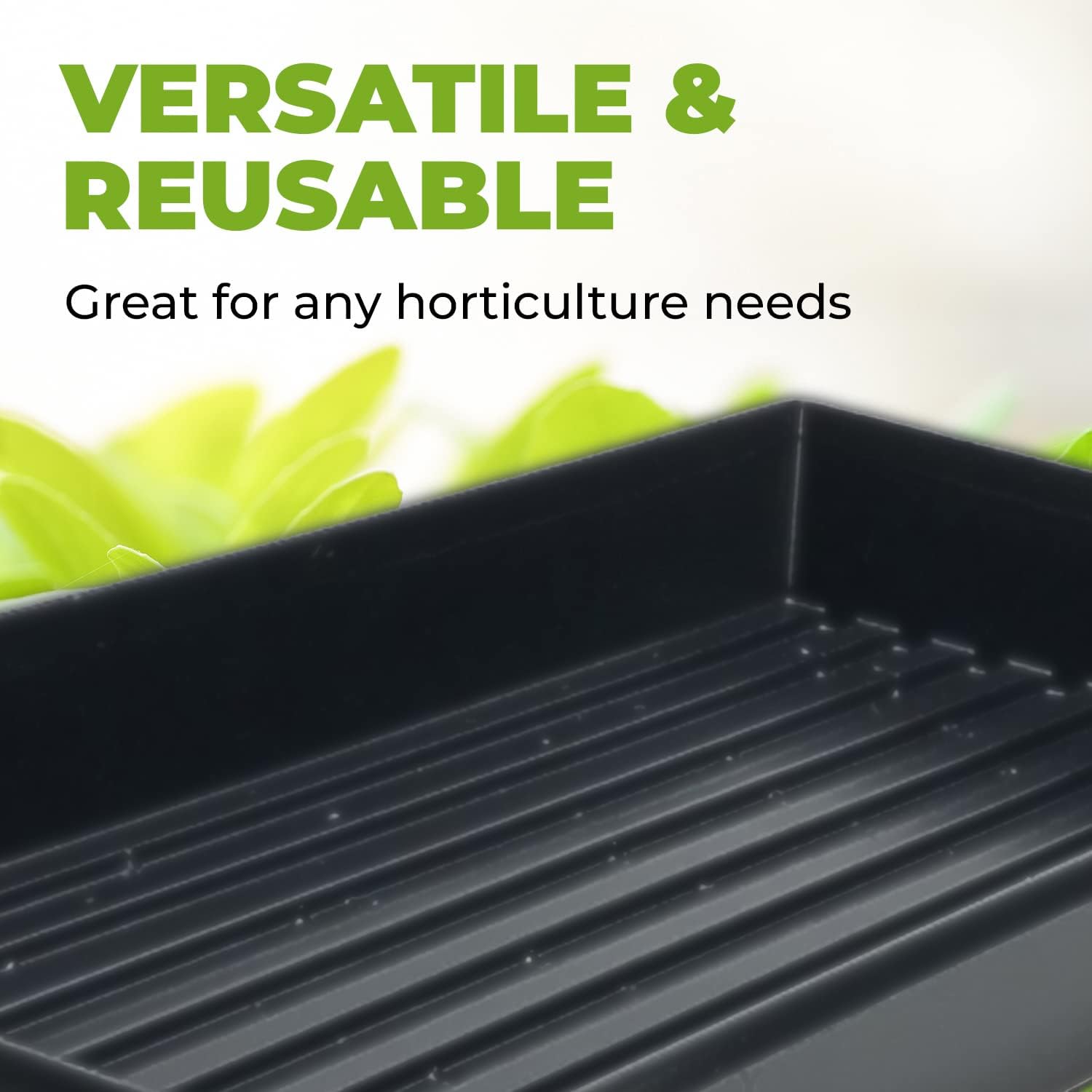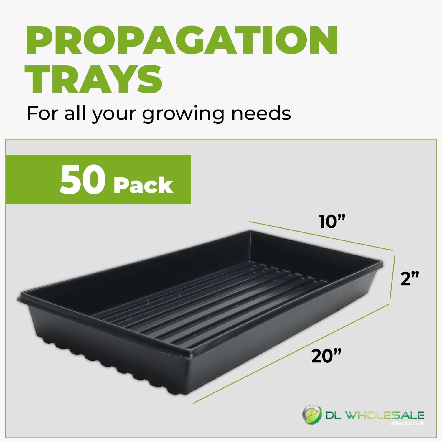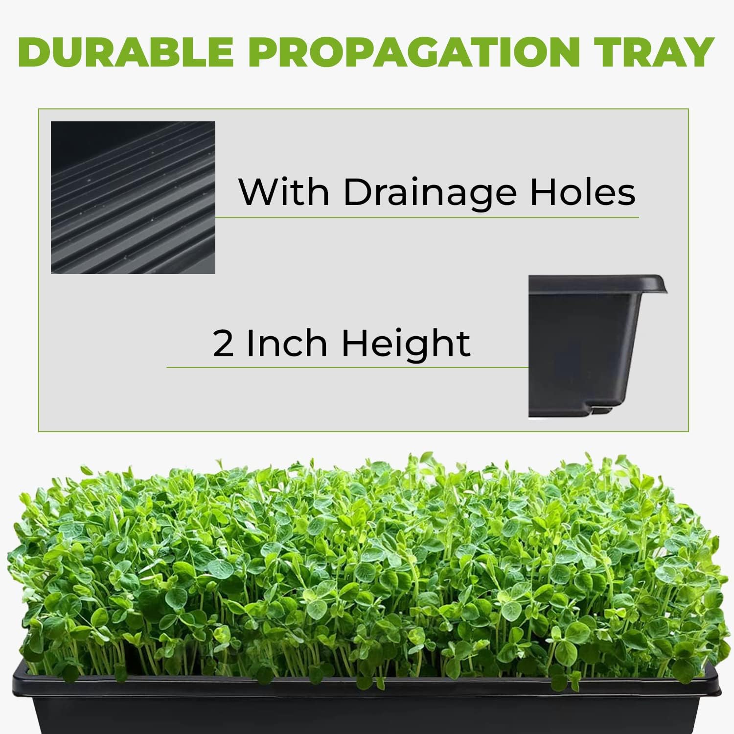 Bandejas para plantas: paquete a granel de bandejas de propagación en tamaño 10 x 20 pulgadas, hechas de plástico duradero con orificios de drenaje para un máximo rendimiento., Germinación eficiente: estas bandejas para plantas de interior están diseñadas para comenzar semillas y cultivar plantas a partir de esquejes. Proporciona condiciones óptimas para mejorar el proceso de germinación., Duradero: de alta calidad y duradero. Bandejas de inicio de plantas robustas y reutilizables con agujeros., Compatibilidad: adecuado para su uso con cúpulas de propagación y alfombrillas térmicas (se venden por separado). Bandejas para sembradoras de semillas ligeras, portátiles e impermeables., Múltiples usos: las bandejas de cultivo son ideales para la propagación de plantas en pequeños invernaderos, jardines interiores y viveros para un crecimiento acelerado de las plantas.