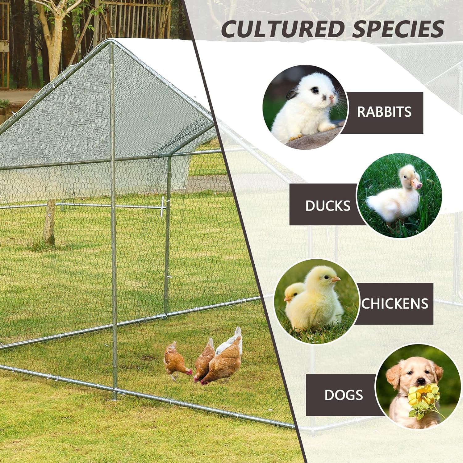 Descripción: Nuestro gallinero utiliza tubos de acero galvanizado resistentes y duraderos, y establece picos de tierra en la parte inferior del gallinero, lo que lo hace más estable y seguro que el gallinero normal. El cobertizo de polietileno en la parte superior puede adaptarse a una variedad de entornos climáticos al aire libre y los consiguientes cambios de temperatura, es impermeable, resistente a los rayos UV y a la nieve. La malla metálica impregnada de PVC también es más segura y estable, por lo que tus pollos no escaparán fácilmente y también se defiende contra agresiones externas. El gallinero se puede utilizar al aire libre en césped, en patios, granjas, granjas y muchos otros lugares al aire libre. No solo puedes colocar tus pollos, sino que tus conejos, patos, perros, pavos y otros animales también se pueden colocar en él, dando a tus mascotas un paraíso al aire libre. Marco de tubo de acero galvanizado seguro, estable y resistente al óxido Techo impermeable y resistente a los rayos UV para adaptarse al medio ambiente PVC plastificado La malla metálica es más segura y estable Diseño para soportar el ambiente exterior desfavorable Techo pico para facilitar el deslizamiento de nieve y reducir la acumulación de nieve superior Instrucciones detalladas de instalación para una fácil instalación Amplia gama de aplicaciones, no solo para pollos Especificación: Marca:TOBYUL Dimensiones del producto: 35 4 pulgadas de largo x 118 pulgadas de ancho x 79 pulgadas de alto. Material: Metal. Color: plateado Especies objetivo: pollos, perros, conejos, patos. Estilo del techo: techo pico