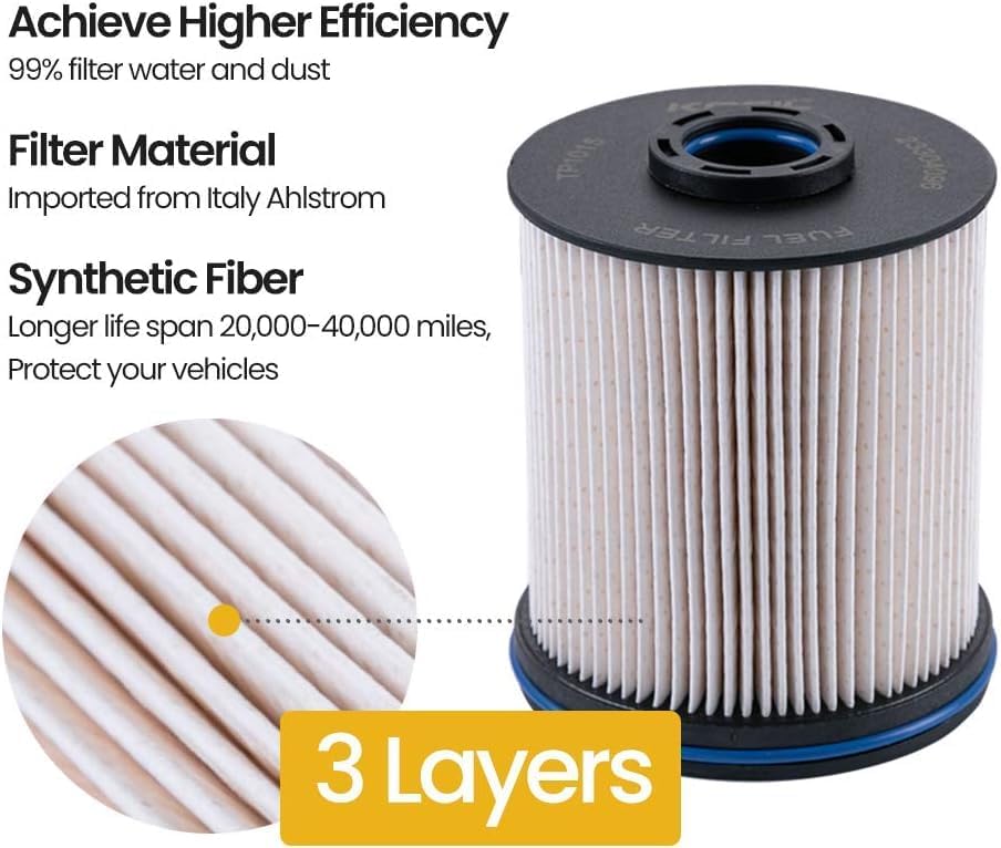 TP1015 Filtro de combustible apto para filtro de combustible diésel Duramax de 6.6L compatible con Chevrolet Silverado 2017-2021GMC Sierra 2500HD