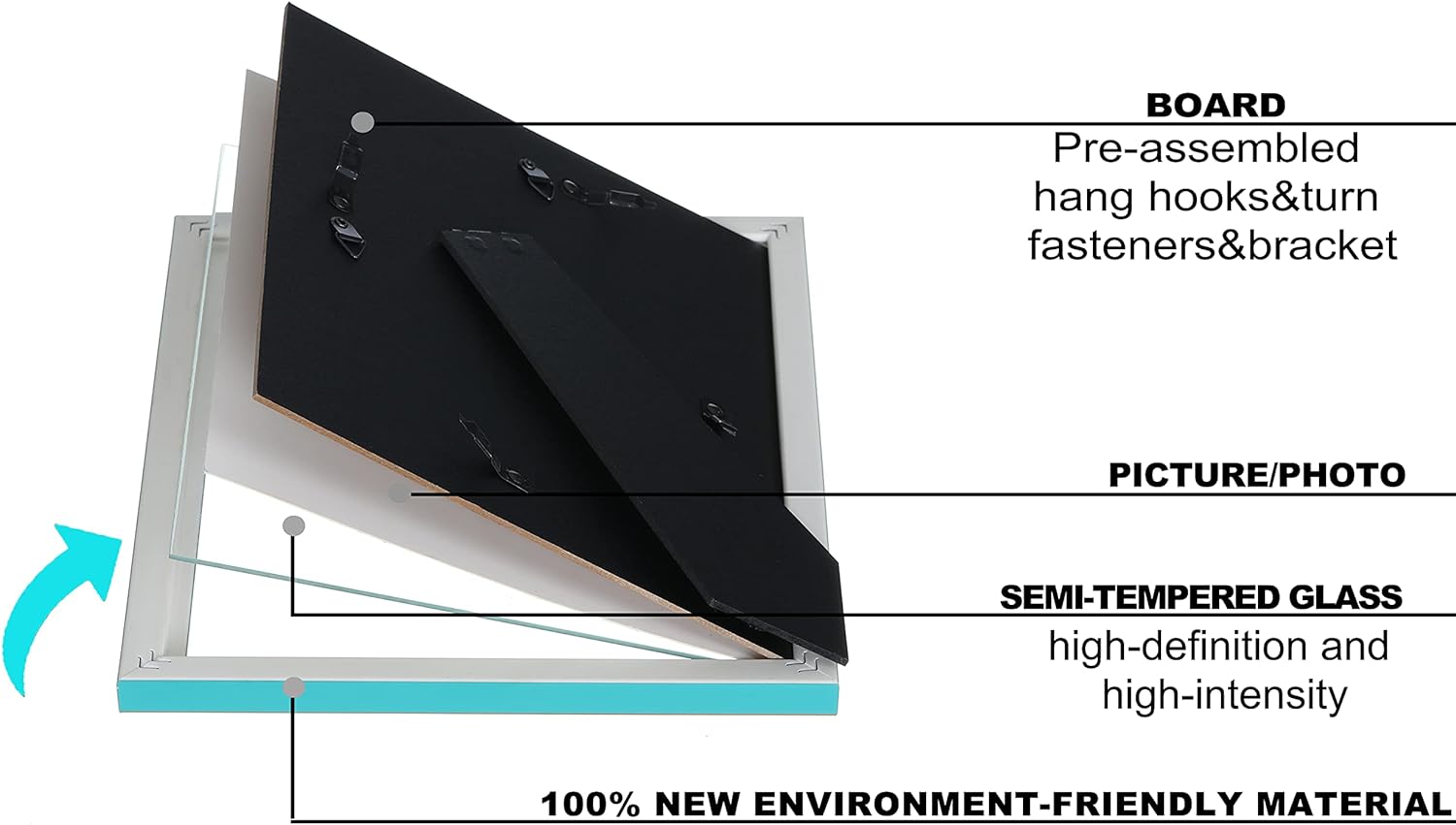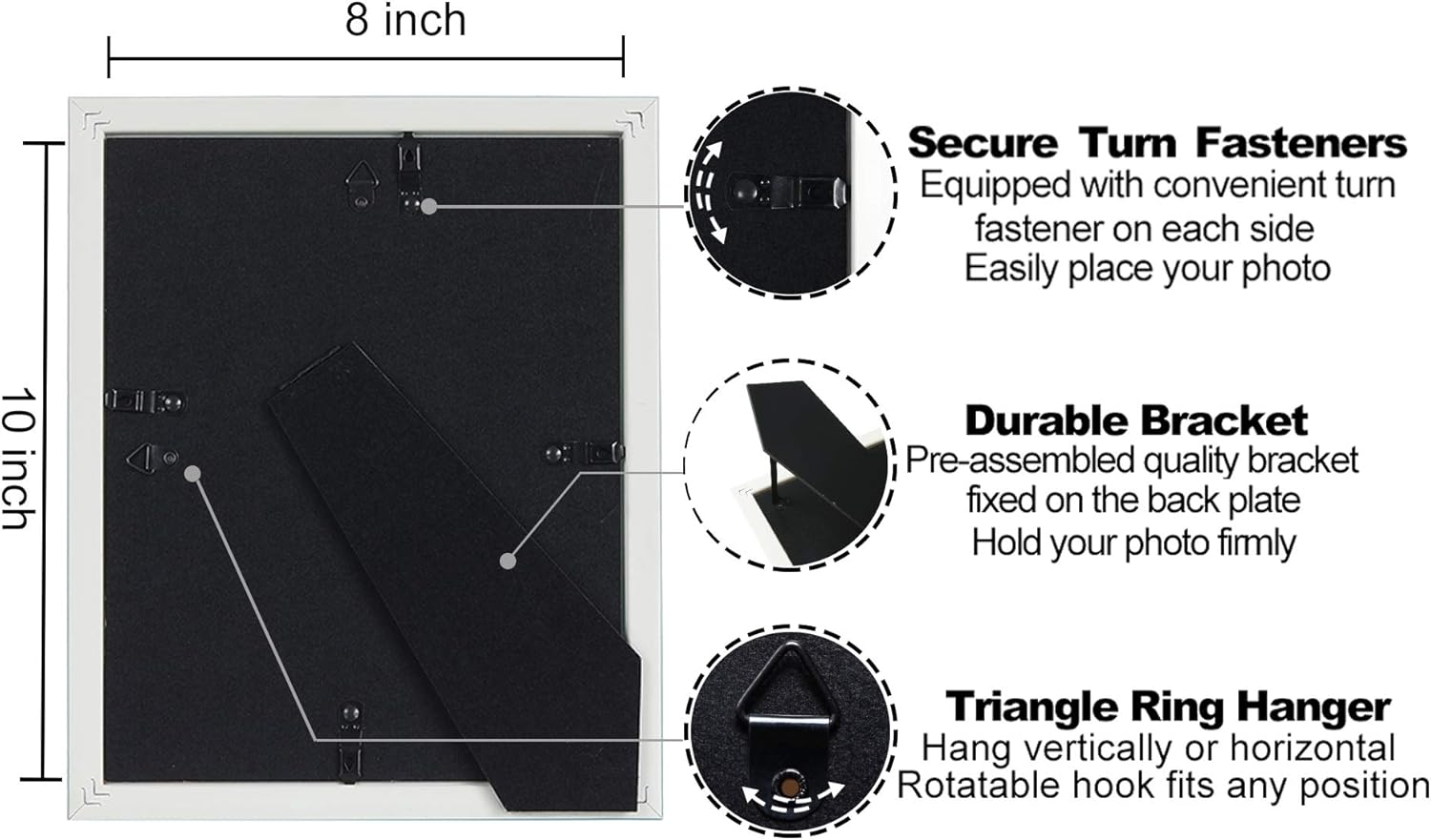 ATTRACTIVE: Simple lines with contrasting colors, the whole atmosphere is bright and stable. Showing a flexible and varied effect. Photo frame with gold rim designed for 8×10 inch pictures., MATERIAL: Made of the new patent material – wood plastic composite, sturdy. High definition semi tempered glass, the edges are polished, prevents scratches., SCENE: Unique color combinations that combine elegance, romance and modernity, make a great gift for family and friends. The simple classic designs that are also suitable for every home and office., INSTALL: At the back of the frame, there is equipped with rotatable buckles for changing photos easily. The 45- degree desktop stand and 2 hanging hooks uses for frames mounting. Hang vertically or horizontally, or display in portrait or landscape orientation., PACKAGING: Before delivery, our products have been firmly packed with paper boxes and bubble bags. And all the edges and corners will have extra protection. Careful packaging ensures our frames can arrive safely.