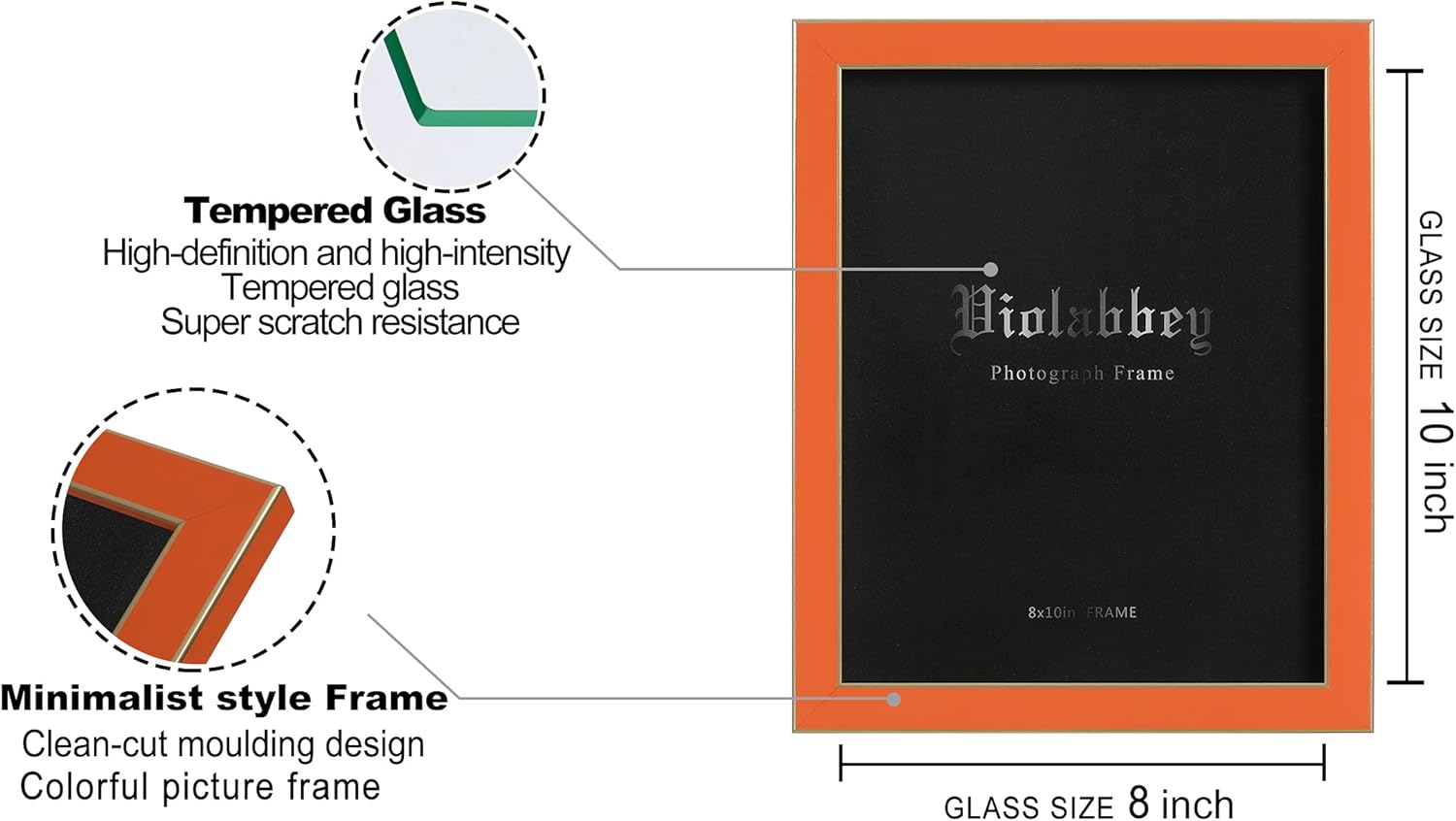 VIOLABBEY 8×10 Picture Frames Set of 4, Colorful Photo Frame of Modern Style, High Definition Tempered Real Glass, Wall mounted or Tabletop Display