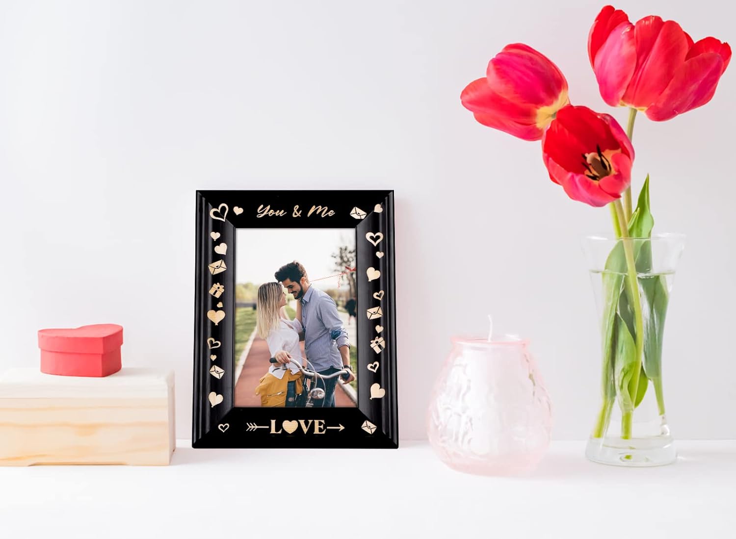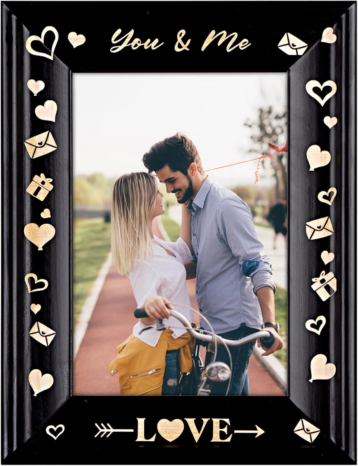 WaaHome Marco de fotos de San Valentín You and Me, marco de fotos de madera con amor, regalo romántico de San Valentín, aniversario, cumpleaños para