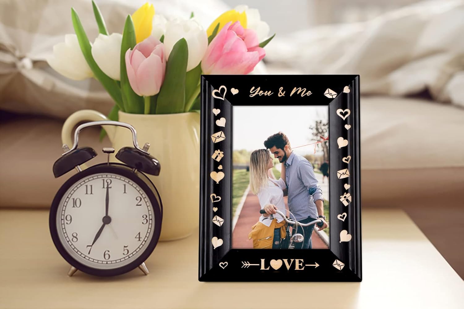 Marco de fotos de San Valentín You and Me: marco de fotos de madera grabado You and Me love, gran romántico día de San Valentín, aniversario, boda, compromiso, Navidad, regalos de cumpleaños para ella, él, novia, novio, esposa, marido, parejas, Marco de fotos de mesa: el marco de fotos del día de San Valentín con caballete trasero, fácil de colocar en la mesa verticalmente, Tamaño: el tamaño del marco de fotos de amor es de aproximadamente 6 x 8 pulgadas y se adapta a fotos de 3.5 x 5.5 pulgadas, Fácil de poner o quitar las fotos: hay 4 pestañas giratorias flexibles en la parte posterior, puedes poner o quitar fácilmente las fotos, Gran marco de fotos de regalo para el día de San Valentín, compromiso, boda, matrimonio, aniversario, cumpleaños, día de la madre, Navidad