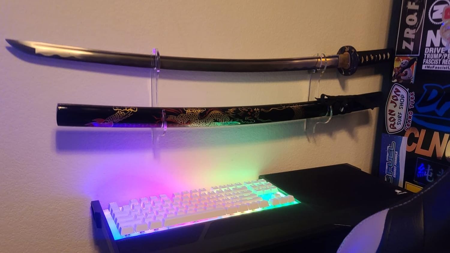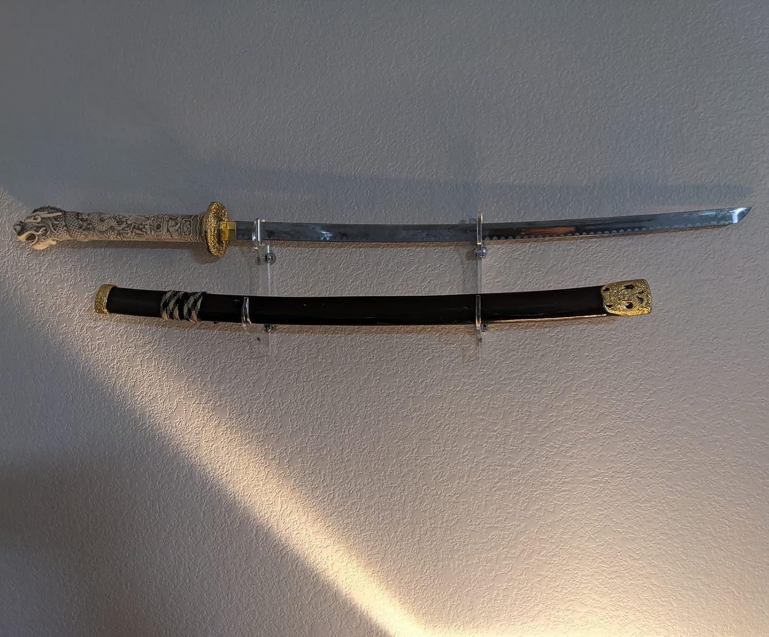 WANLIAN Soporte de espada, gancho de espada, acrílico de dos capas montado en la pared, soporte de exhibición de espada samurái, soporte de mesa de