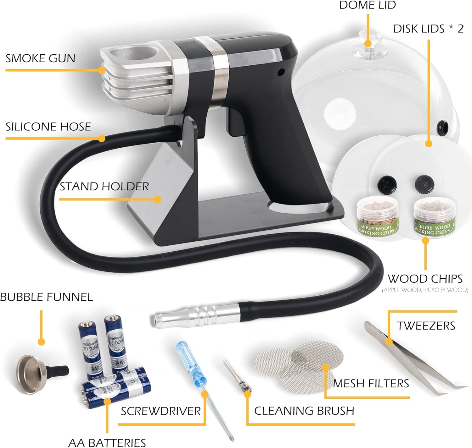 ✔️Luce bien en cualquier reunión: ¡ser el capitán de la fiesta nunca ha sido más divertido! Con esta pistola humeante, podrás disfrutar preparando cócteles ahumados o infundiendo tu comida en tu próxima reunión. Es muy cómodo de usar con su diseño elegante que hace que sea fácil de manejar para cualquier persona. Perfecto para dar un auténtico sabor a barbacoa a todo tipo de platos, incluyendo carnes, quesos, bebidas (margaritas! ), postres (galletas! ), salsas (¡salsa BBQ! ), ensaladas (¡ensalada de aguacate!), ✔️La mayoría de accesorios y accesorios de cualquier juego de pistola de fumar: este kit de ahumador de cóctel es perfecto para aportar aroma y sabor ahumados a tus creaciones culinarias y mixológicas. Recibirás una pistola de ahumar, cúpula Cloche de 10 pulgadas, 2 tapas de disco de cubierta de taza, embudo para hacer burbujas de cóctel, muestreadores de virutas de madera de manzana y nogal, 4 pilas AA y más. La boca de burbujas de humo de cóctel crea burbujas decorativas perfectas para un servicio teatral (Nota: líquido de burbujas de cóctel no incluido), ✔️Lo mejor para cócteles, postres y queso: crea cócteles ahumados, queso y postres con este kit de ahumador de cóctel para bebidas. Si está buscando un fumador de alimentos con pistola humeante para infundir sus cócteles con un sabor ahumado, entonces ha venido al lugar correcto. El infusor de humo WITANHURST para cócteles también funciona con cajas para ahumar cócteles y es la opción ideal para whisky barbacoa, licores, anticuado, bourbon, así como cócteles y carnes para ahumar., ✔️Gran idea de regalo para cualquier época del año: si conoces a alguien que ama cocinar y organizar fiestas, este ahumador frío sería un excelente regalo. Ya sea Navidad, Acción de Gracias, Día de la Madre, Día del Padre o un regalo de cumpleaños, esta divertida idea de regalo complacerá a fumadores y cocineros por igual. ¡Pueden poner sus habilidades en otro nivel haciendo carnes ahumadas que saben como si estuvieran frescas de la parrilla o cócteles que impresionarán a todos en la mesa!, ✔️ Rápido y fácil de usar: no necesitas ningún equipo elegante o un título en estudios de barman para disfrutar de estos maravillosos sabores ahumados. Cada paquete contiene chips de madera para ahumar cócteles que se infundirán en tu comida mientras fuma, dándole un delicioso sabor ahumado que es perfecto para cócteles, queso, postres y más recetas de cocina. Simplemente añade las astillas de madera a la pistola ahumadora de cocina de mano, enciende las virutas con un encendedor de antorcha o un palo de fósforo.