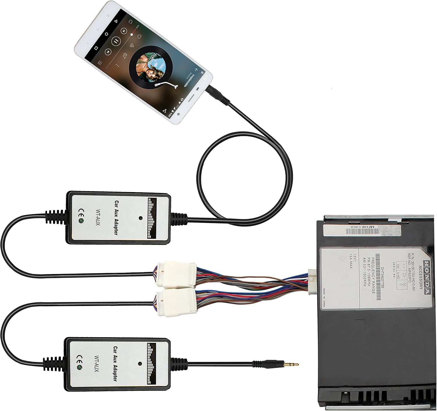 Controla los archivos de música desde el panel de radio de tu coche Conexión directa a través del puerto cambiador de CD con sonido de calidad de cd La mejor calidad de sonido del chip amplificador de potencia de alta calidad y mediante el uso de la conexión del puerto del cambiador de CD Ajuste para Honda 2.4 conector blanco Accord City CRV Civic Odyssey Fit Interfaz auxiliar de 0.138 in para escuchar música, diseño inteligente y fácil de instalar y usar