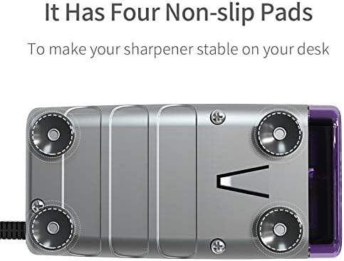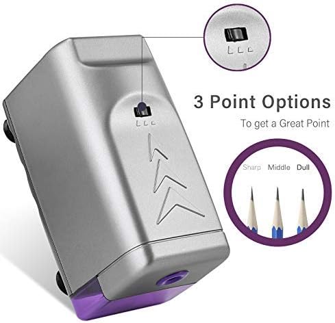 Características automáticas y de seguridad sacapuntas eléctrico: el sacapuntas eléctrico funcionará automáticamente al enchufar el lápiz en la entrada de afeitado, dejará de funcionar automáticamente una vez que saca el lápiz o se abra la bandeja de afeitado. Esta función protegerá sus dedos de lesiones por la cuchilla., Afilado rápido y ahorro de tiempo: el sacapuntas eléctrico con cuchillas de alta calidad que es lo suficientemente bueno como para producir un punto bien afilado. Solo 3-5 segundos para afilar, lo que te da una impresionante experiencia de afeitado. Especialmente diseñado para niños, estudiantes, profesores, artistas, ingenieros, diseñadores industriales, etc., Punta fina: el sacapuntas viene con una hoja afilada integrada, que es lo suficientemente potente como para dar una punta fina para No. 2 lápices o lápices de colores. Sostenga el lápiz con la mano para afilarlo después de que esté encendido. Esto no está diseñado para no para crayones y lápiz de cejas., Fácil de limpiar: abre la tapa del depósito para verter las virutas de lápiz cuando termines, sin añadir demasiados problemas. Nuestro producto proporciona garantía de por vida, por favor ponte en contacto con nosotros para solucionarlo si se daña durante el uso., Compra sin riesgos: 100% garantía de satisfacción de por vida. Estamos tan seguros de que estarás encantado con nuestro sacapuntas eléctrico que si no estás satisfecho con ellos en cualquier momento, ponte en contacto con nosotros y te proporcionaremos un reemplazo GRATIS o un reembolso completo.