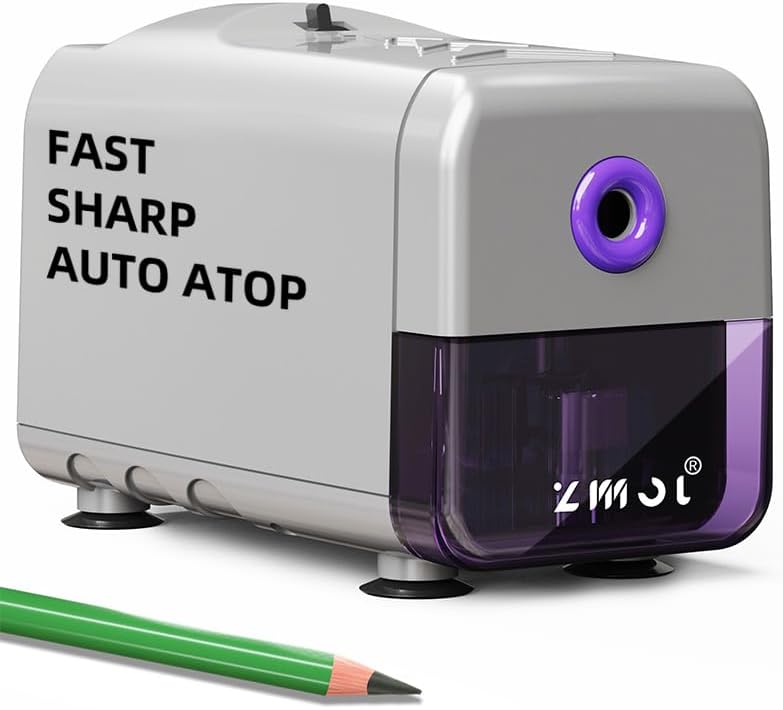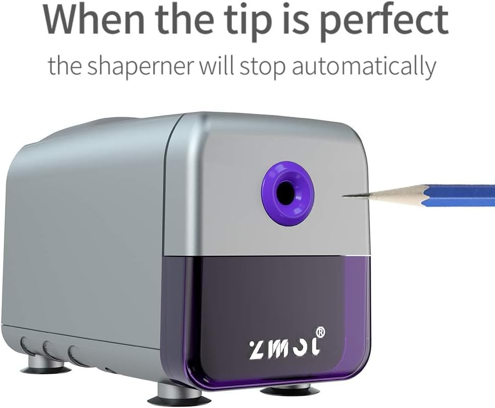 Zmol Rodillo eléctrico con hoja en espiral resistente para lápices n. 2de colores (0.256-0.315 in), sacapuntas profesional con certificación UL con