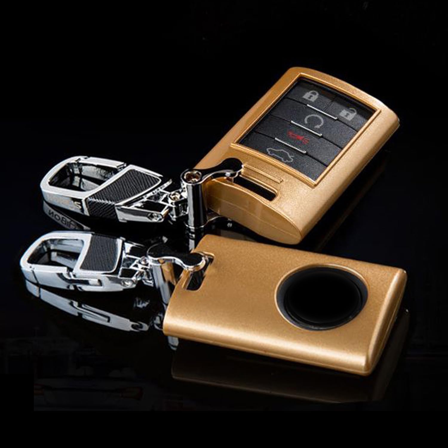 Zorratin Funda metálica de color perla + llavero de metal para Cadillac ATS CTS DTS XTS o Chevrolet Corvette C7 (1 juego que consta de 1 llavero + 1