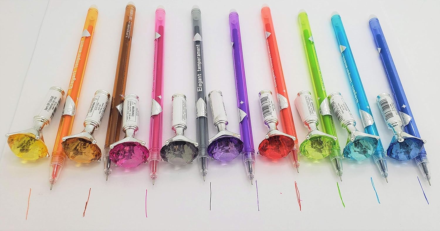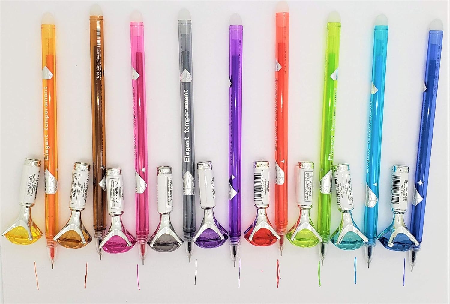 Los bolígrafos de gel vienen en varios colores, paquete de 24 bolígrafos. Cada color del bolígrafo corresponde al color de la tinta. !, Cada uno de estos bolígrafos cuenta con una tapa en forma de diamante., Impresionante regalo de escritura, perfecto para adultos, niños y estudiantes., Utiliza estos bolígrafos de gel de moda en tu tienda, oficina o escuela. Perfecto para premios, regalos, recaudación de fondos, carnavales, escuelas, aulas, estudiantes, regalos y mucho más, Estos bolígrafos de gel de punta fina de 7 pulgadas son ideales para dibujar, tomar notas, etc.