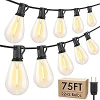 Tira de luces LED S11 de 75 pies para exteriores, luz de patio regulable, con 22+2 bombillas Edison de 2700 K impermeables, inastillables, para Negro
