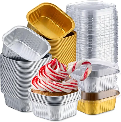 Aoriher 150 moldes cuadrados de 10 onzas para pasteles con tapas, tazas de brownie de aluminio para hornear, moldes desechables para cupcakes,