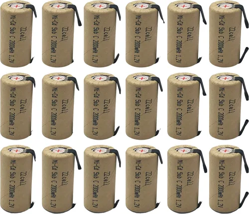 18 baterías ZZcell Sub C con pestañas recargables para herramientas eléctricas, tasa de descarga de 10C, Nicd 1.2V 2000mAh, paquete de 18