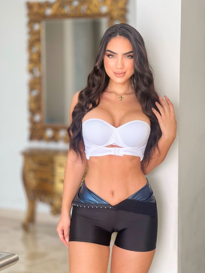 Licra nylon hasta un poco mas bajo de la entre pierna