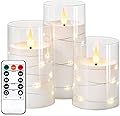 NURADA Velas Parpadeantes Sin Llama: Velas LED de Pilar de Acrílico con Luces de Cadena de Estrellas Integradas Operadas por Batería con Control
