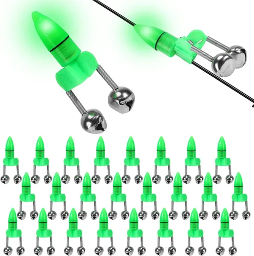 25 campanas de caña de pescar con luces de punta, alarmas de mordedura de pesca dobles para cañas de pesca, luces LED brillantes para pesca