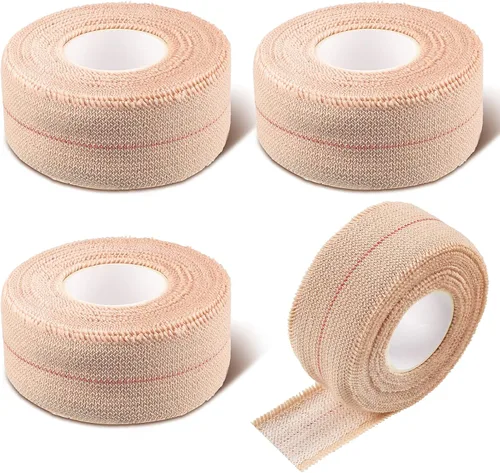 El paquete incluye: recibirás 4 rollos de cinta elástica, de 1 pulgada x 5 yardas, que se pueden estirar hasta 10 yardas de longitud, y se pueden aplicar de acuerdo a tus necesidades reales, lo suficientemente largo como para satisfacer tus múltiples necesidades Buen rendimiento: hecho de un tejido elástico de alta torsión con un adhesivo a base de goma, el respaldo poroso minimiza la irritación de la piel, una cinta porosa, adhesiva, elástica, de color beige que permite que la piel respire; se estira alrededor de superficies irregulares Alta elasticidad: tela suave, construcción porosa, línea roja centrada en la tela y baja tensión de desenrollado, se puede aplicar donde se necesitan apósitos de presión que requieren elasticidad, ayuda a mantener una presión controlada constante, garantiza cómodamente un ajuste personalizado alrededor de áreas difíciles de cinta adhesiva Cómodo y flexible: es ideal para donde se necesitan apósitos de presión que requieren elasticidad como después de una mastectomía, o se puede aplicar para correas de apoyo, fracturas, lesiones musculares, rodillas, codos y hombros Amplia aplicación: las cintas adherentes no solo se enrollan en partes del cuerpo, sino que también son bonitas envolturas de vendaje para mascotas de animales; cuando tu perro requiere un apósito cómodo y de apoyo que también facilita el movimiento, esta cinta de vendaje es ideal para proteger las heridas y lesiones de tu perro