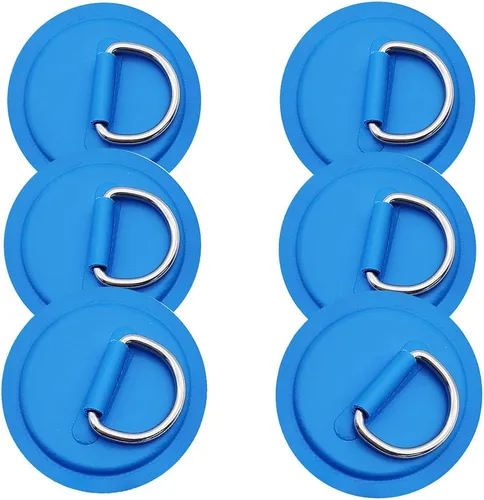 1. Fácil de instalar y cómodo de usar. 2. Cantidad: 6 piezas azules, no incluye pegamento. Necesitas comprar el pegamento adicional. 3. El anillo D está hecho de acero inoxidable 304 y PVC de alta calidad, resistente, duradero y resistente a la corrosión en uso a largo plazo. Incluso en ambientes húmedos y agua salada. 4. Diámetro del parche: 3.15 pulgadas. Diámetro del anillo en D de acero inoxidable: 1.260 in 5. Este anillo en D es adecuado para botes inflables de PVC, balsa, bote, kayak, canoa, SUP, tabla de surf, tabla de remo. Consejos: por favor endurece la parte posterior y limpia la superficie antes de pegar, lo que hará que el parche de anillo en D sea más duradero.
