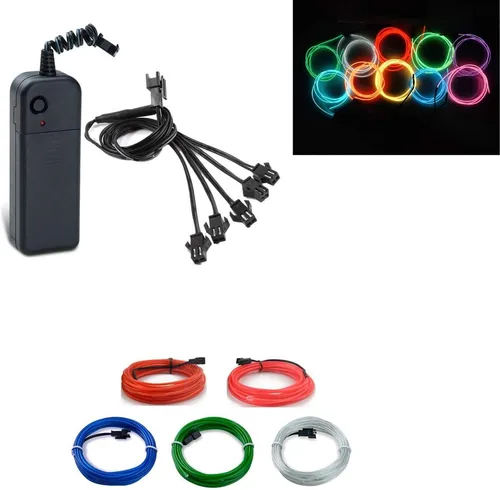 Detalles del producto: -- Diámetro del cable: 0.091 in. -- Longitud del cable: 5* 3 pies -- Colores: Azul, Verde, Rosa, Púrpura, Naranja, Amarillo, Rojo, Blanco, Azul Hielo, Verde Fluorescente. -- 3 modos de luz: encendido continuo, estroboscópico, parpadeo y apagado. -- Alimentado por: 2 pilas AA (no incluidas). ❥El paquete incluye: -- 1 cable EL de 16.4 x 3.3 ft. -- 2 controladores de batería AA (batería no incluida)*1 ❥Característica clave: -- Este kit portátil de alambre EL ha sido creado por la artesanía de alambre electroluminiscente. EL Wire es un tipo de material de iluminación no tóxico, menos liberación de calor, muy duradero y resistente al agua. -- Un controlador de batería para cada paquete. -- Puede ofrecer 360 grados de iluminación en toda su longitud, fácil de instalar, se puede doblar en cualquier forma y cortar en cualquier longitud. -- Cada conductor es capaz de conducir un máximo de 16.4 x 3.3 ft de cable EL en cualquier momento. -- Flexible, ahorro de energía, menos consumo de energía que los LED. -- Ideal para fiestas de disfraces de Halloween, decoración de Navidad, coche, bicicleta de ciclista, bar de campamento.