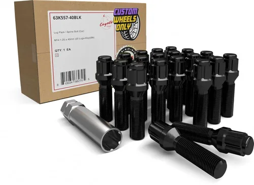 Solo para uso postcomercial: este juego de 20 pernos M14 x 1.25 puede ser correcto para su vehículo OE, sin embargo, el asiento de la lengüeta puede no ser lo suficientemente grande como para crear suficiente fuerza de sujeción para atornillar de forma segura la rueda OE a su vehículo. Por favor, confirma los requisitos de asiento de la lengüeta antes de comprar. Ajuste de precisión diseñado para ruedas de posventa. Compatible en vehículos con roscas de pernos de 14x1.25 como se encuentra en Usar con espaciador de 10 o 12mm. Confirma la compatibilidad con CONFIRMAR AJUSTE DE AMAZON. Solo para ruedas de posventa ESPECIFICACIONES EXACTAS DE FÁBRICA: Incluye 20 piezas de perno de llanta M14 1.25 | Rosca de 14x1.25 | Longitud de rosca de 40mm | Longitud total de 69mm | Coche de 6 estrías | Asiento cónico de bellota de 60 grados | Acabado negro | Grado SAE 10.9 | Juego de 20 pernos de llanta | Incluye adaptador hexagonal de 17mm y 21mm DISEÑADO Y PROBADO EN EE.UU.: Nuestros pernos de tuerca negros M14x1.25 son un complemento perfecto para tus llantas del mercado de accesorios. Los pernos de tuerca de llanta de 6 ranuras se utilizan principalmente en ruedas con pequeñas cavidades de tuerca. Cada perno cumple o supera las especificaciones de fábrica, SAE Grado 10.9 Durabilidad extendida: estos pernos de rueda vienen con un revestimiento negro multicapa premium probado para protección contra la corrosión por pulverización de sal de 72 horas. Acero al carbono forjado en frío. Hilos precisos de alta calidad. Construido según los estándares SAE. Acabado negro resistente al óxido