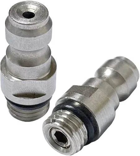 Material: Acero inoxidable, Calificación a 4000 PSI, presión máxima: 5000 PSI Tamaño: enchufe de desconexión rápida de 0.315 in, rosca macho M8 Tipo: enchufe de desconexión rápida de rosca macho con foster unidireccional Adaptador de conexión rápida: Fácil de operar, resistencia a alta presión, desconecte rápidamente un macho a hembra accesorios de herramienta neumática de rosca Utilizado a convertidor hembra de 0.315 in y rosca macho M8, accesorios de cilindro inflables se conectan a manguera de alta presión, compatible con PCP airsoft, pistola de aire, paintball, tanques de paintball y tanques SCBA llenando etc. Confiable y sin fugas