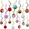 Decoraciones navideñas colgantes de techo (30 piezas totalmente montadas), bolas de árbol de Navidad, remolinos recortados para fiesta de Navidad,