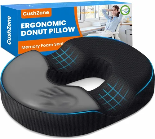 CushZone Almohada de Dona para Postparto y Embarazo - Grandes Cojines Ergonómicos para Silla, Cojín para Silla de Oficina, Almohada Respirable para