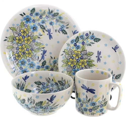 Alyssa - Juego de 4 piezas de cerámica polaca Blue Rose - Servicio para 1