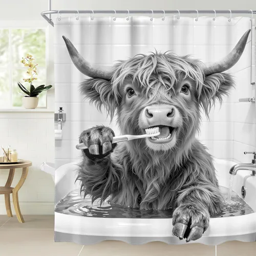 AMBZEK Divertida cortina de ducha de vaca de las tierras altas, 60 pulgadas de ancho x 72 pulgadas de largo, divertida granja, ganado rústico,