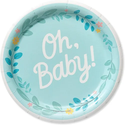 36 platos redondos pequeños Mide 7 pulgadas. x 7 pulgadas. Fabricado en Estados Unidos "¡Oh, bebé!" con borde floral Suministros de fiesta de American Greetings perfectos para una fiesta de cumpleaños infantil o baby shower