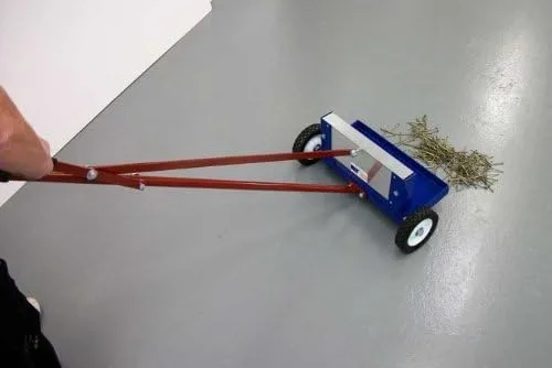 Los potentes imanes recogen grandes cantidades de clavos, tornillos y otros desechos de acero. Descarga de standup: simplemente tire hacia atrás de la palanca para liberar la carga. Las unidades están construidas con acero de calibre pesado: el doble del grosor de los modelos de la competencia!! ! 1.75 distancia al suelo para facilitar el rodamiento en interiores y exteriores. Ancho del imán: 14.