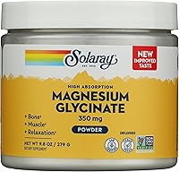 SOLARAY Polvo de glicinato de magnesio 350 mg - Polvo de magnesio sin sabor - Suplemento de magnesio para apoyo óseo, muscular y relajante - Vegano,