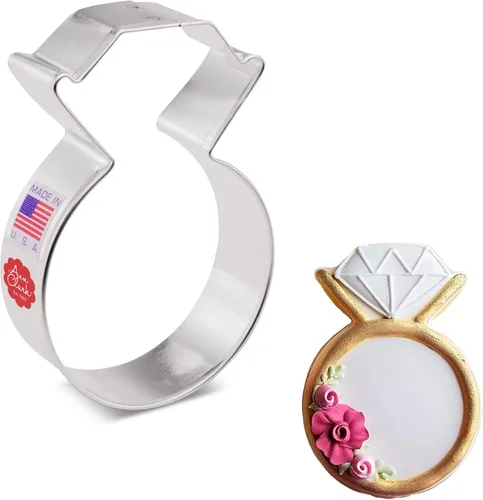 Pon un anillo en él; este cortador de galletas con anillo de diamante tiene una bonita forma para usar en una despedida de soltera Fabricado en los Estados Unidos; fabricado en Estados Unidos con acero americano certificado seguro para alimentos Variedad; Durante más de 30 años, la familia Clark se ha especializado en diseños originales para hornear creativos Suministros para hornear y fiestas; corta el molde y decora formas temáticas para cualquier fiesta o evento festivo Crea; haz formas divertidas con masa de galletas, galletas de fondant, brownies, pasteles o arcilla artesanal